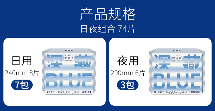 她研社深藏BLUE囤货组合-10包74片卫生巾