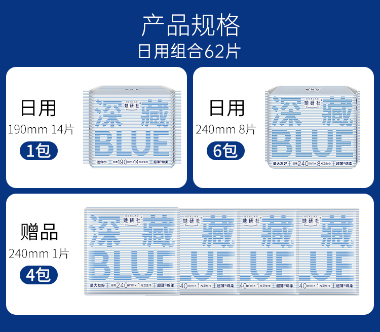 她研社深藏BLUE日用组合-7包62片卫生巾(4片同款日用便携装)