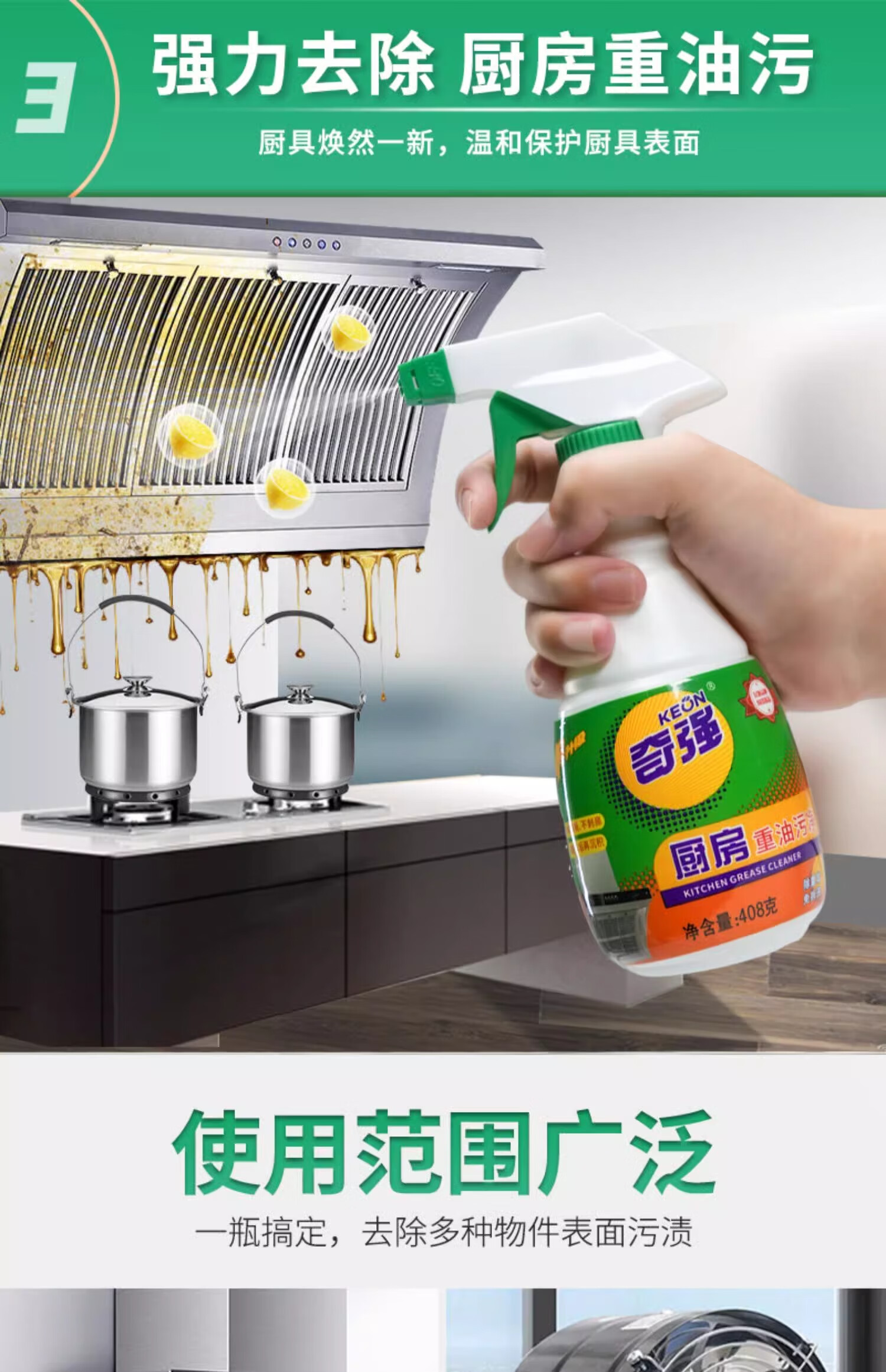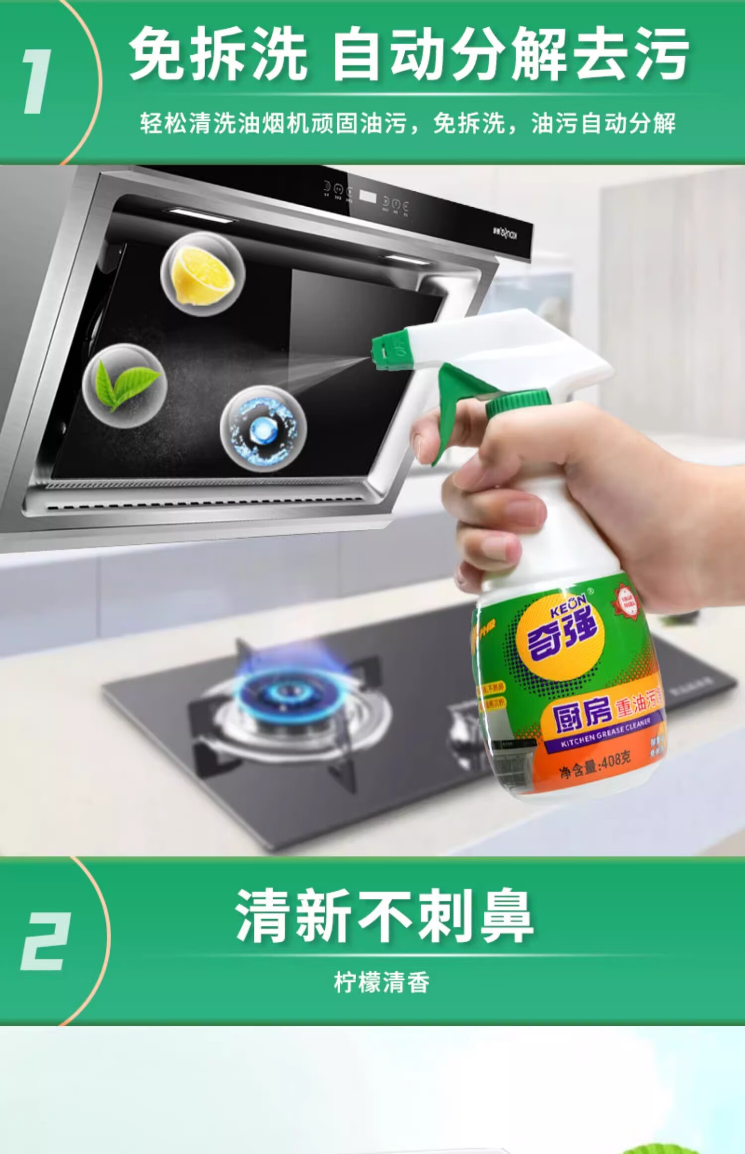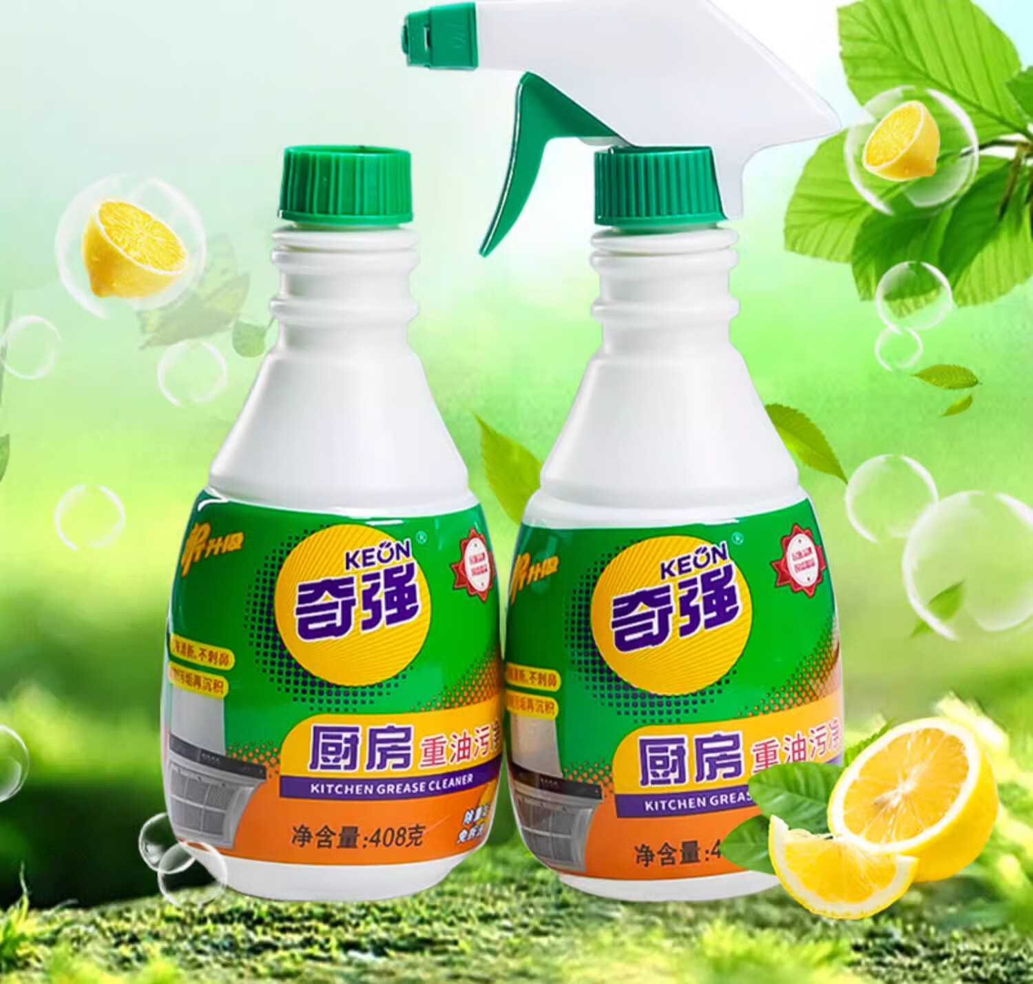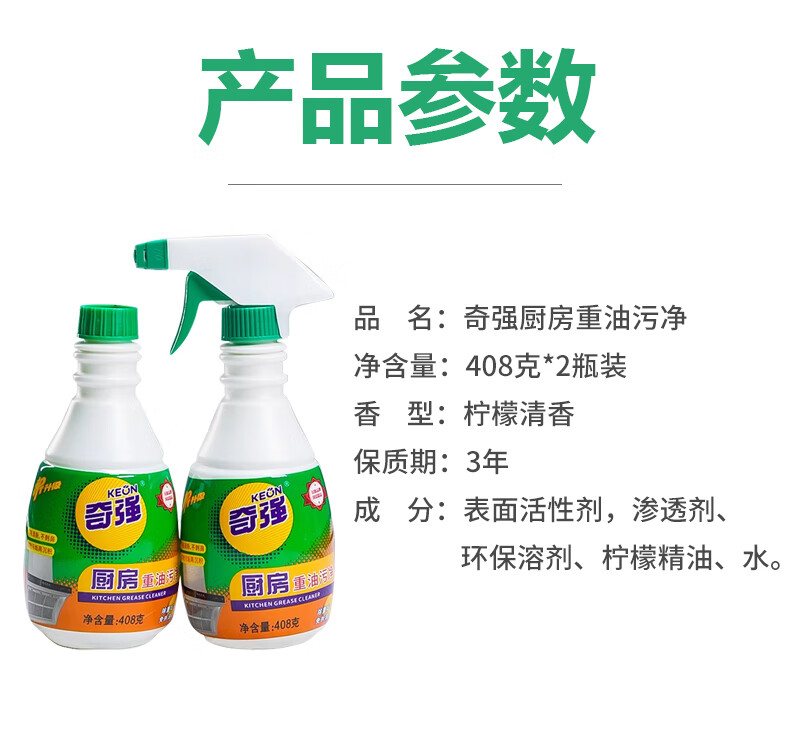 奇强油烟机清洗剂油污威洁净猛去油除菌厨房重油污净408g*2瓶柠檬清香