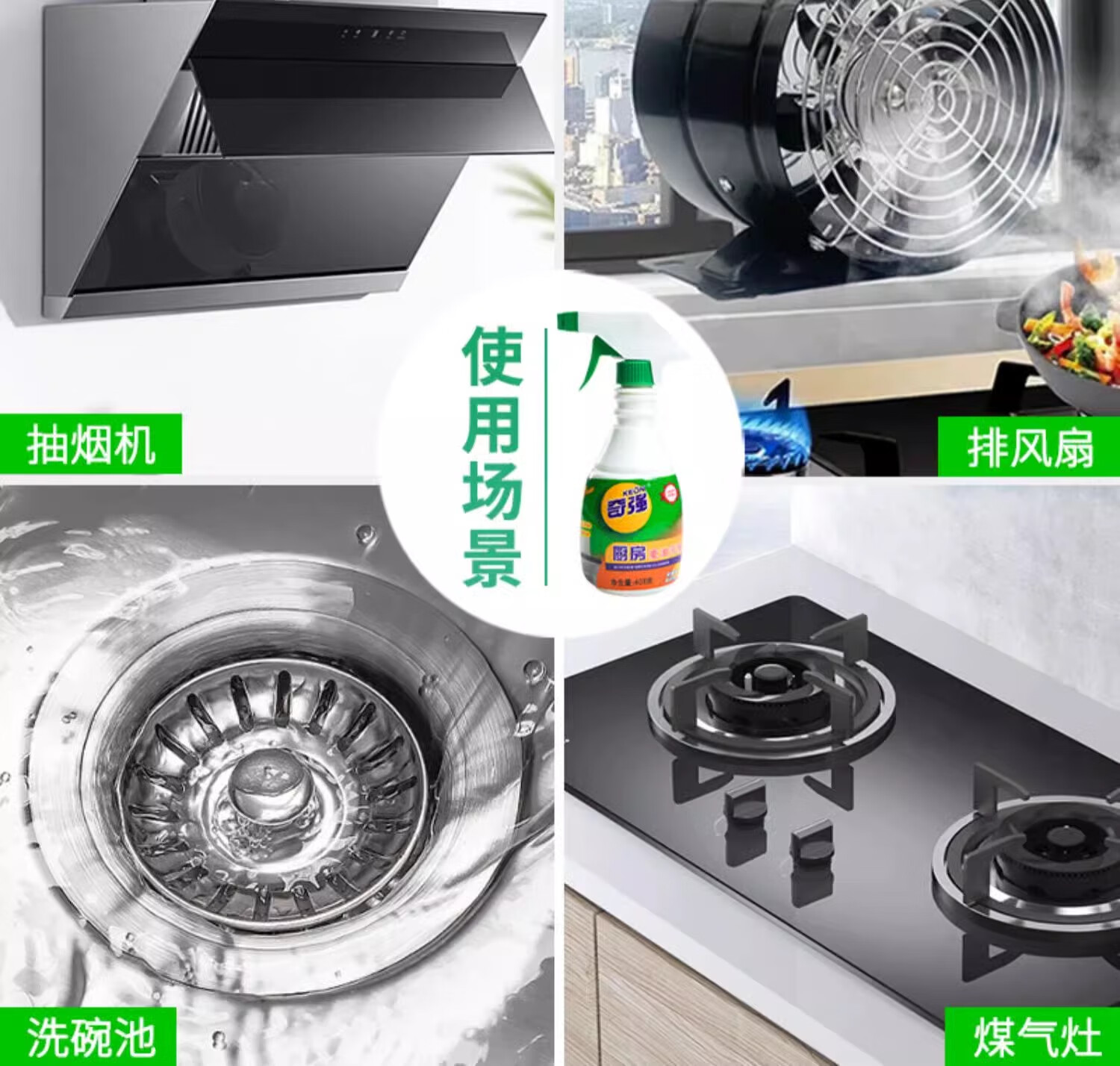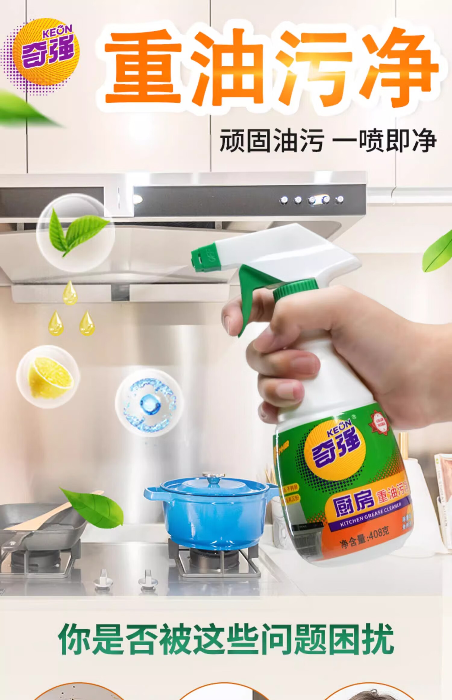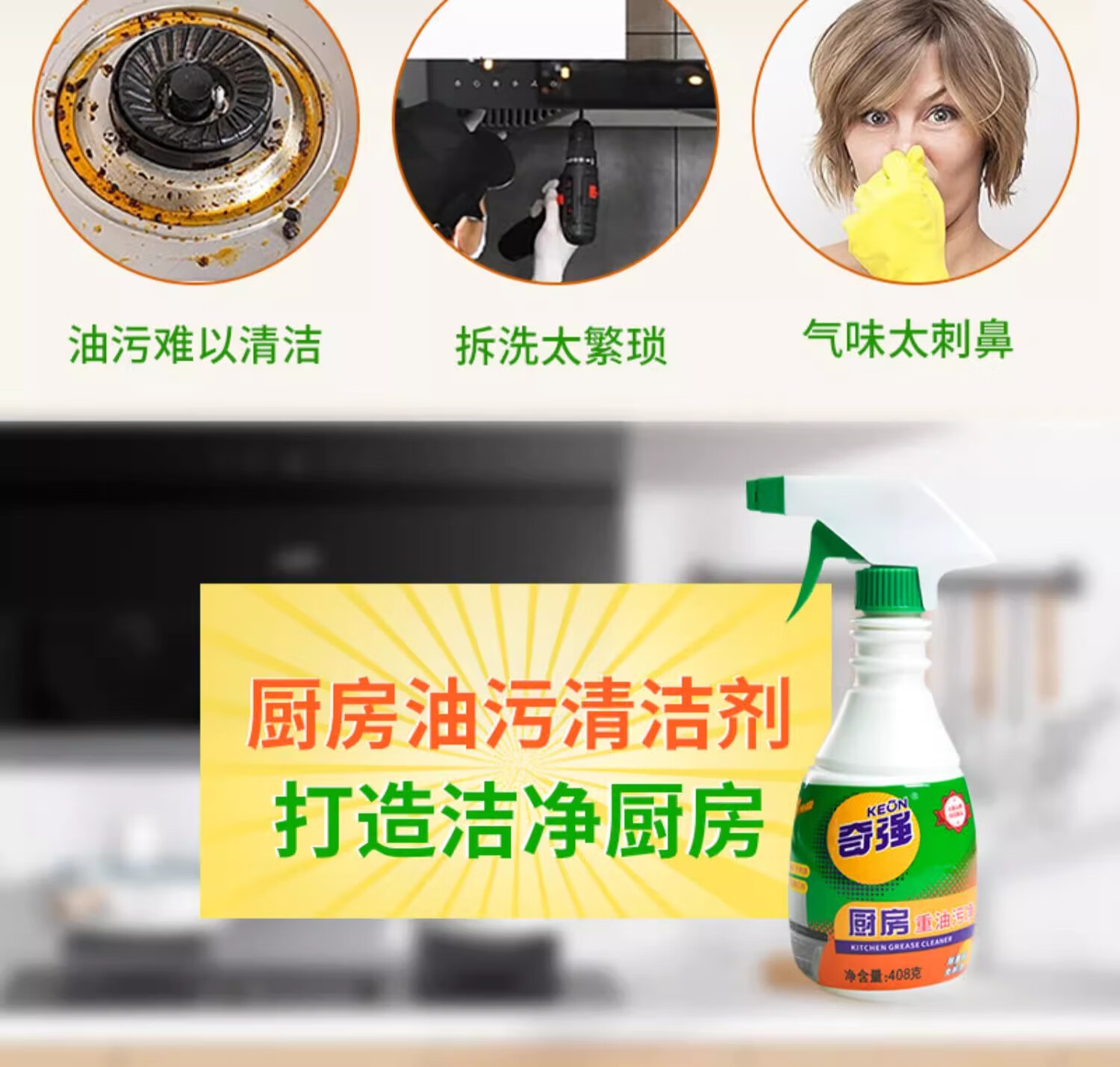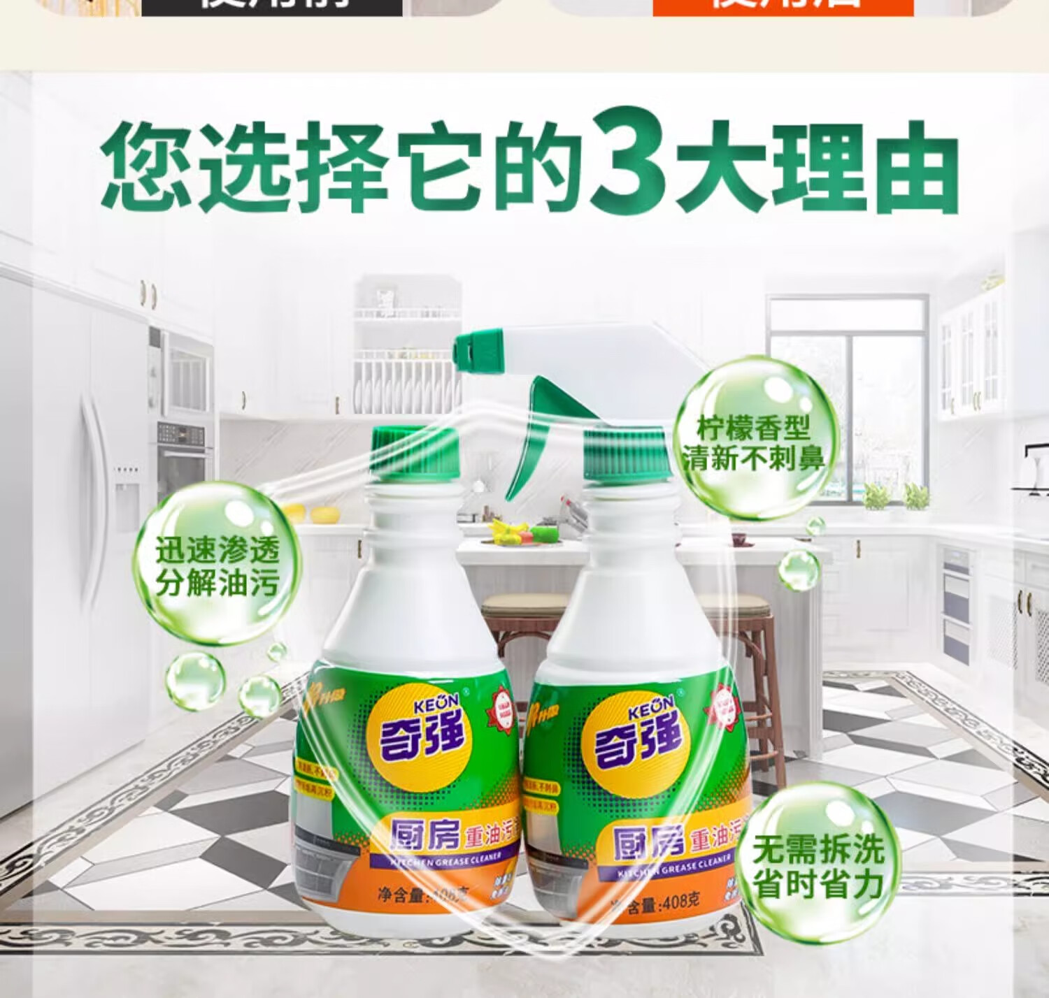 奇强油烟机清洗剂油污威洁净猛去油除菌厨房重油污净408g*2瓶柠檬清香
