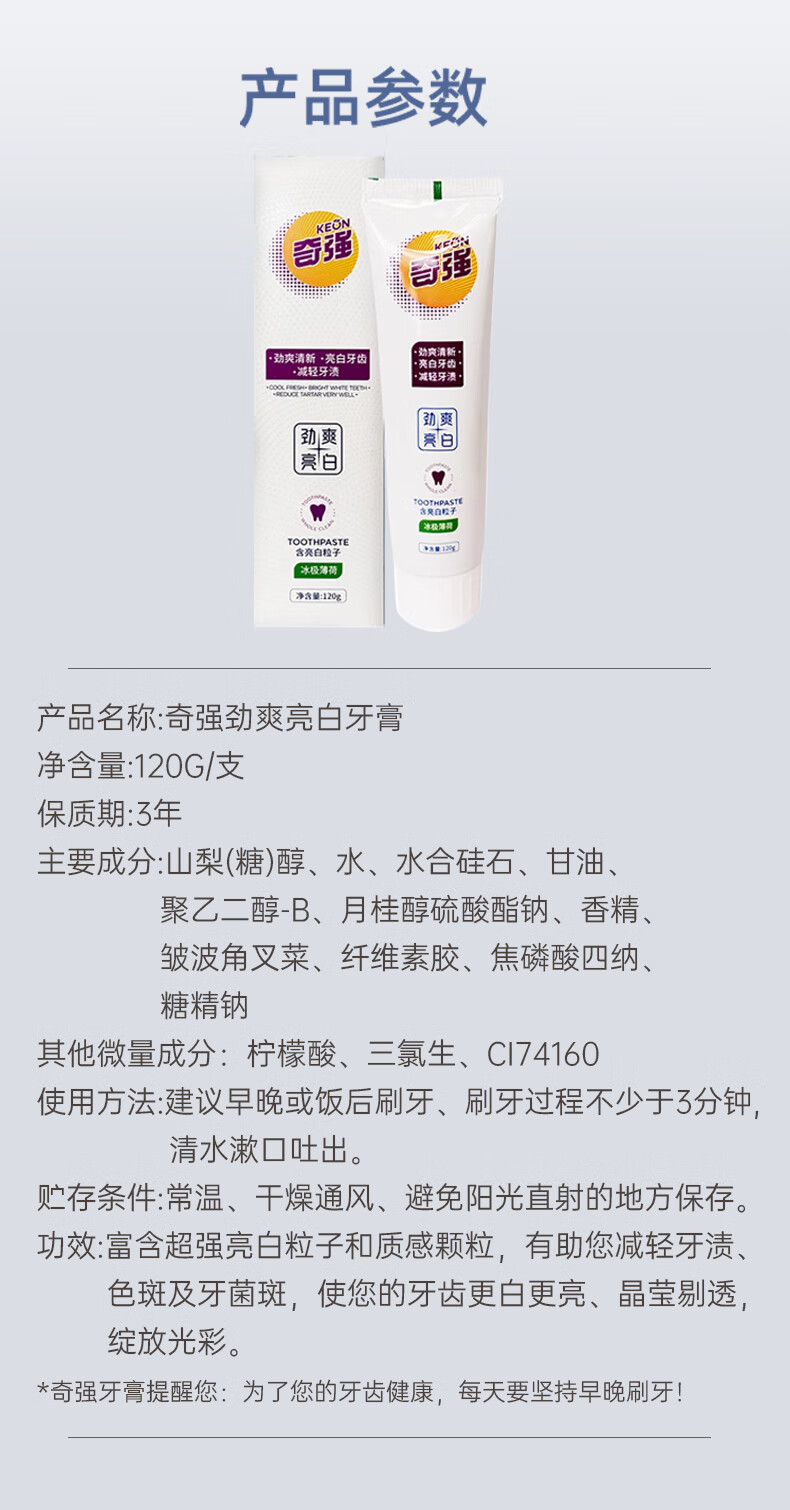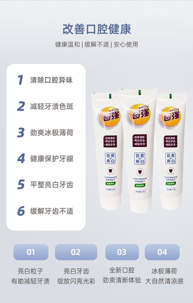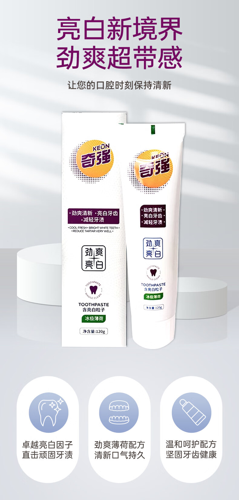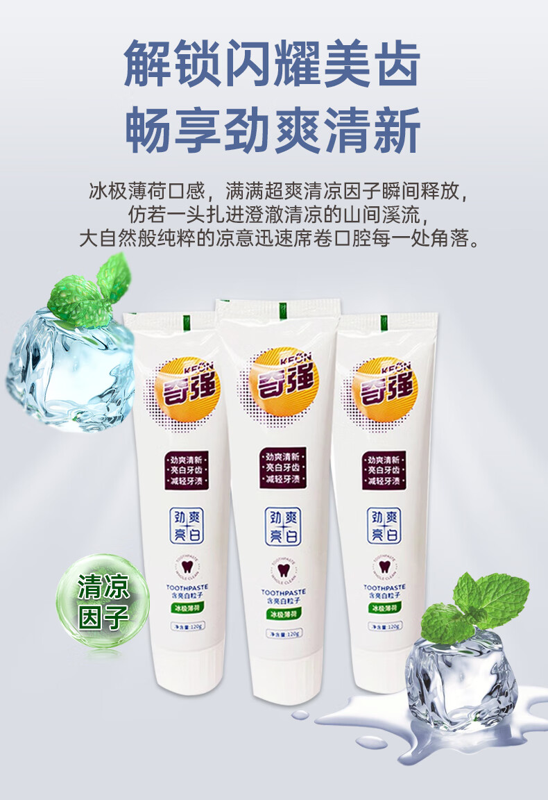 奇强冰极薄荷亮白牙膏护龈健齿减轻牙渍口腔异味不含氟劲爽清新120g