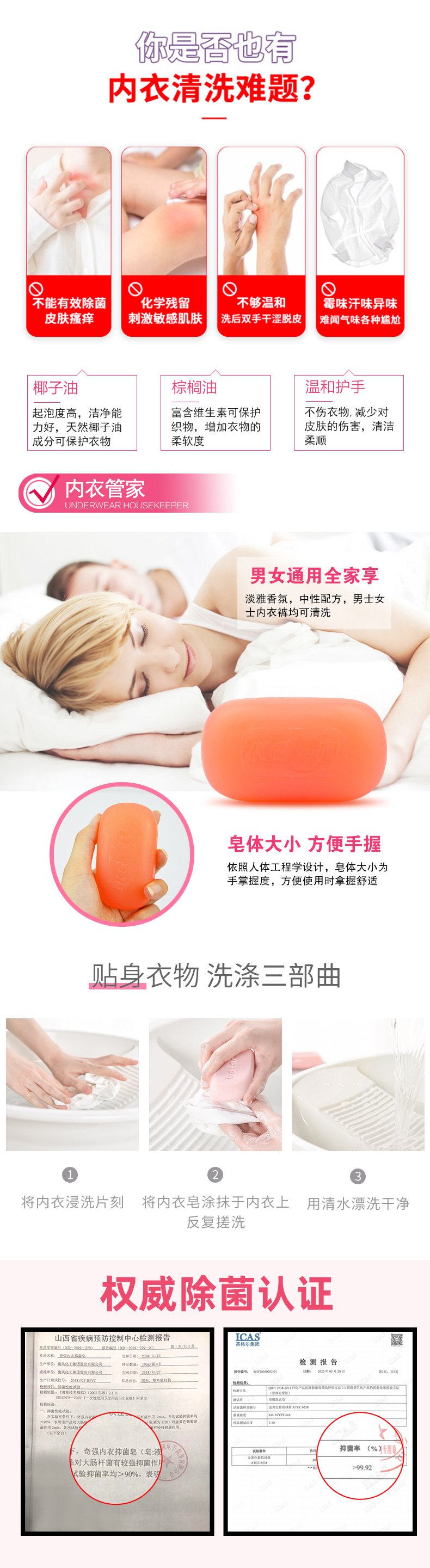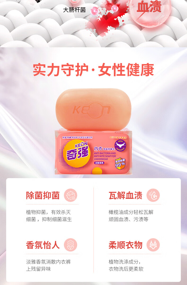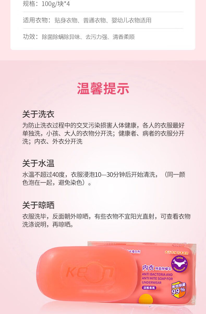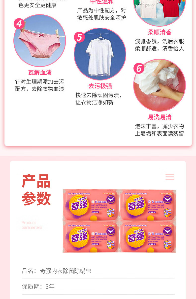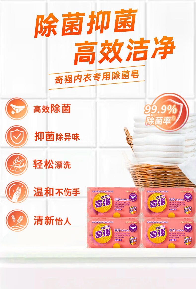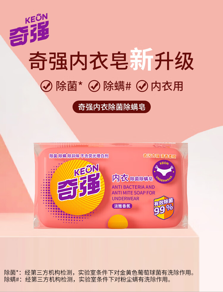 奇强除菌除螨肥皂内衣皂100g*4块婴幼儿男/女士内衣裤洗衣温和不伤手