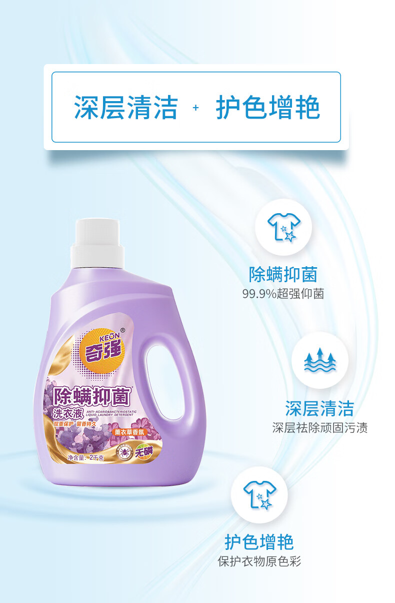 奇强(keon)8斤装除菌除螨洗衣液中性温和护衣薰衣草香氛持久留香整箱批发