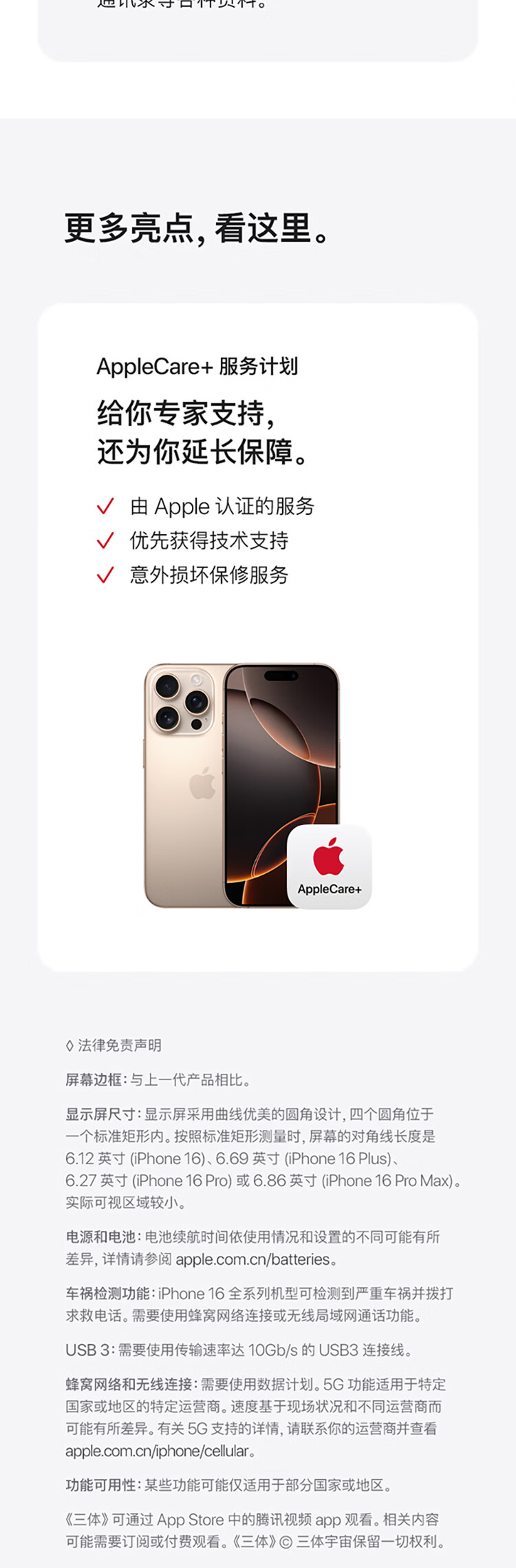 Apple/苹果 iPhone 16 Pro(A3294)128GB 白色钛金属 支持移动联通电信5G 双卡双待手机