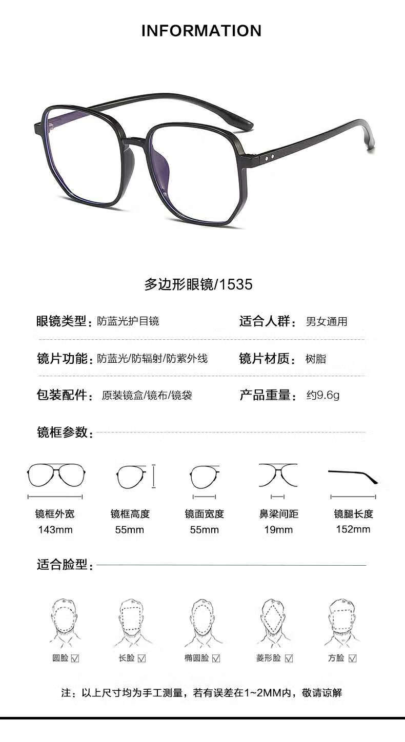 骊佳骊佳韩版大框防蓝光护目镜网红同款眼镜1535 黑色