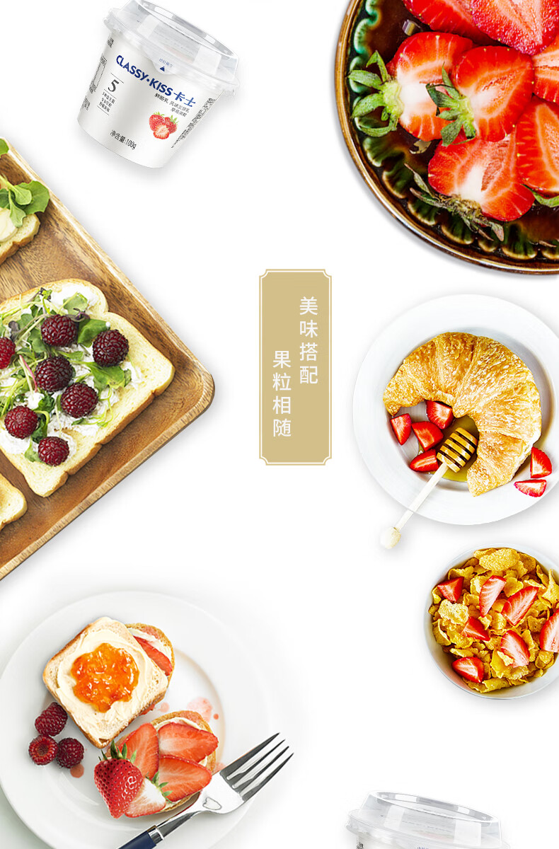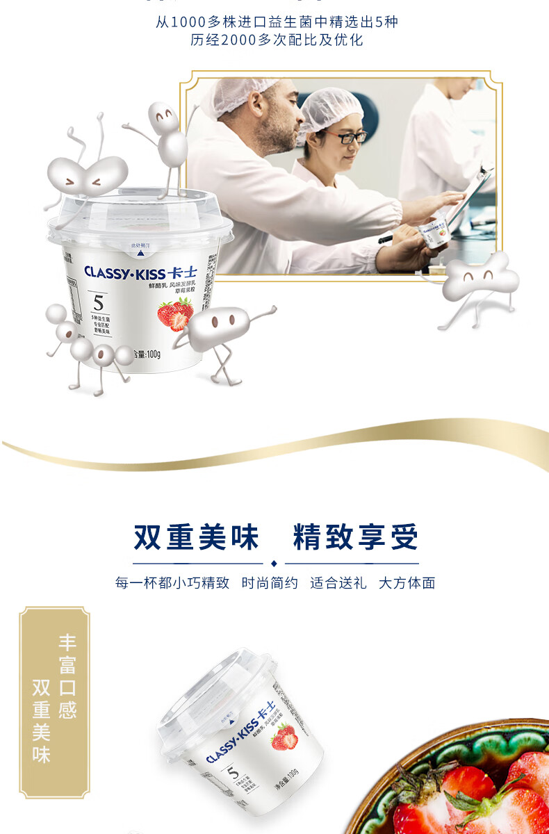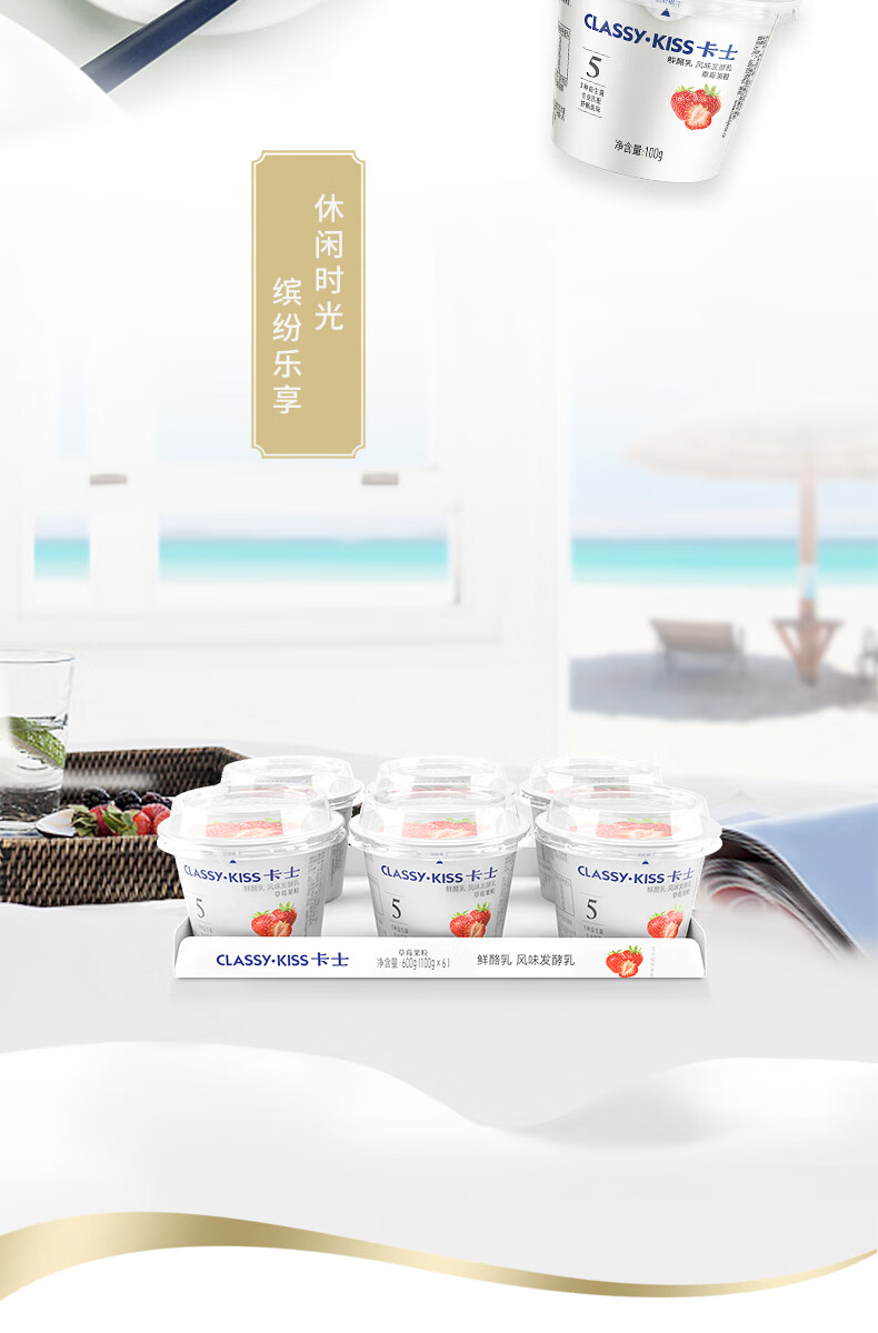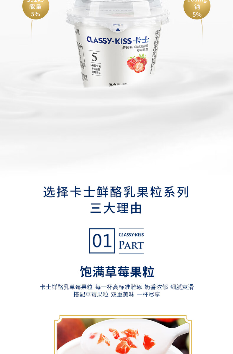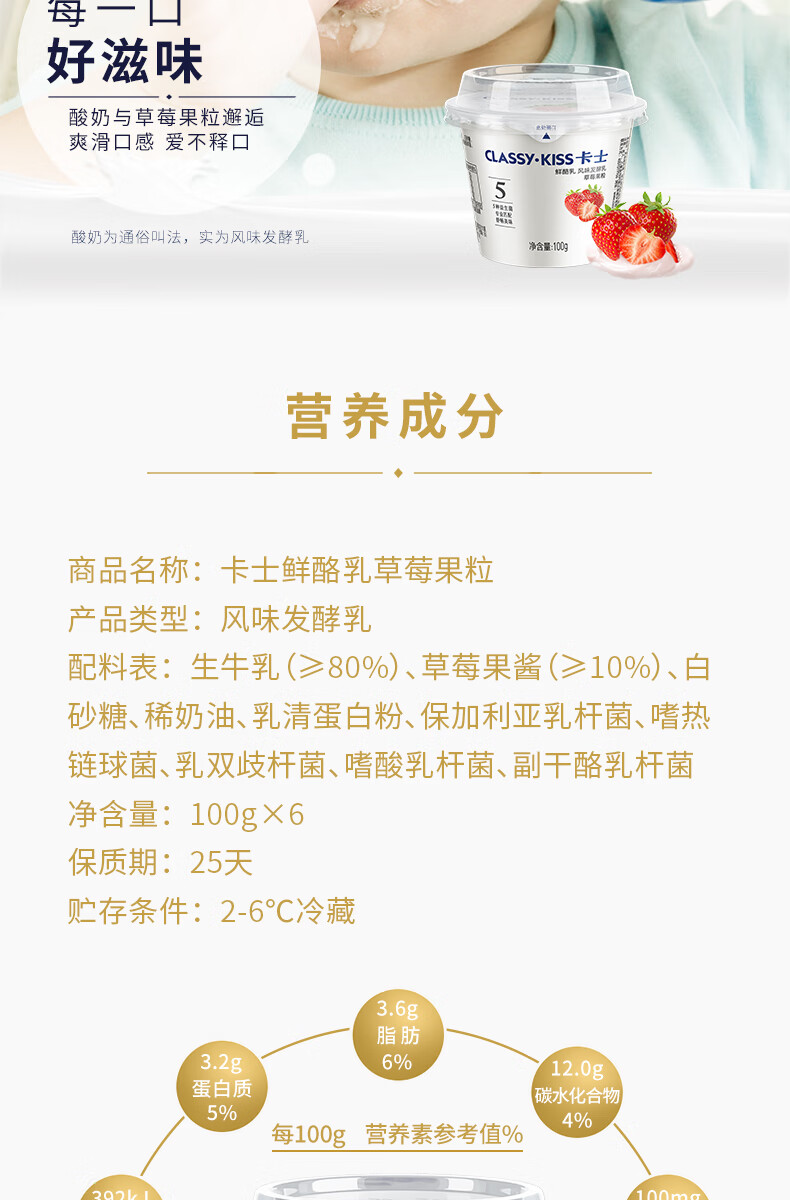 卡士 CLASSY.KISS 草莓果粒鲜酪乳 100g*6杯 低温酸奶风味发酵乳