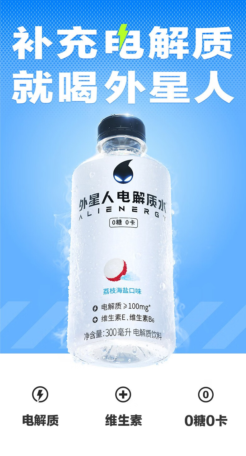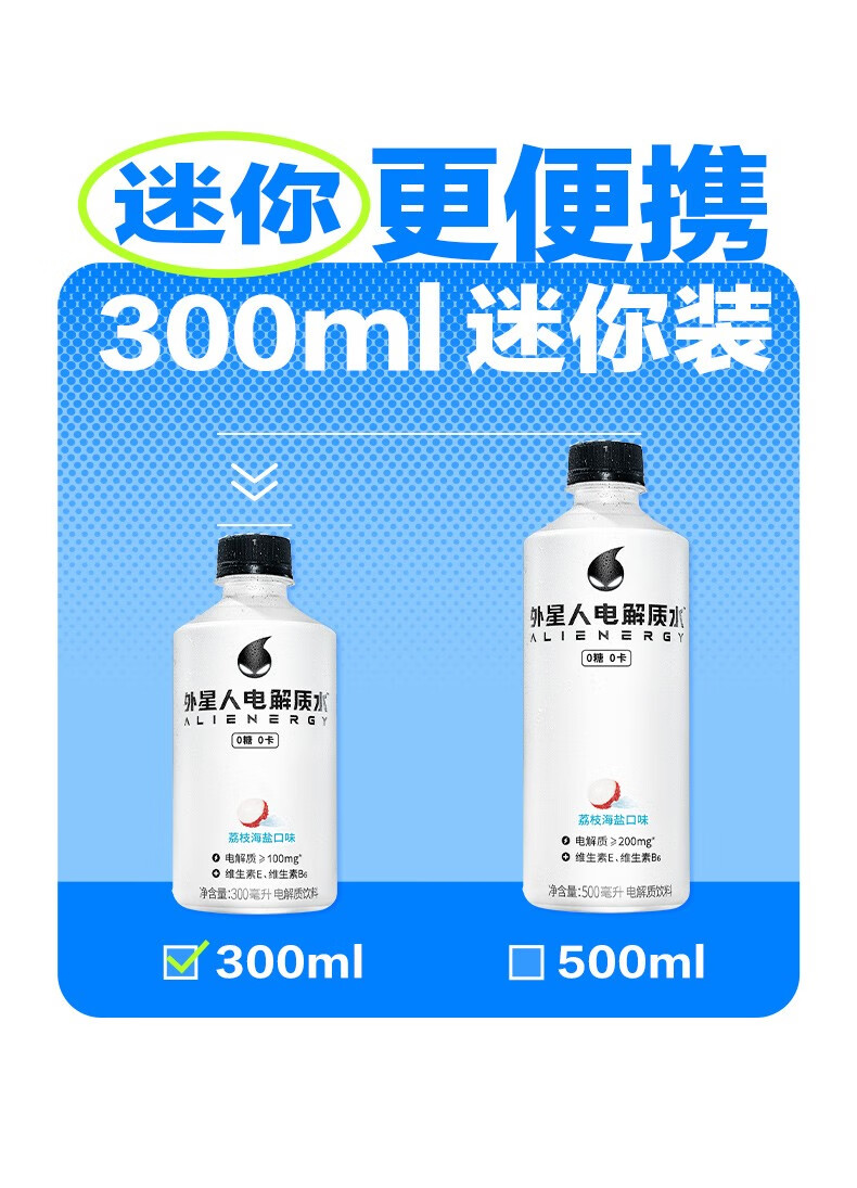 元气森林出品外星人电解质水无糖饮料荔枝海盐味300mLX15瓶装整箱 荔枝海盐口