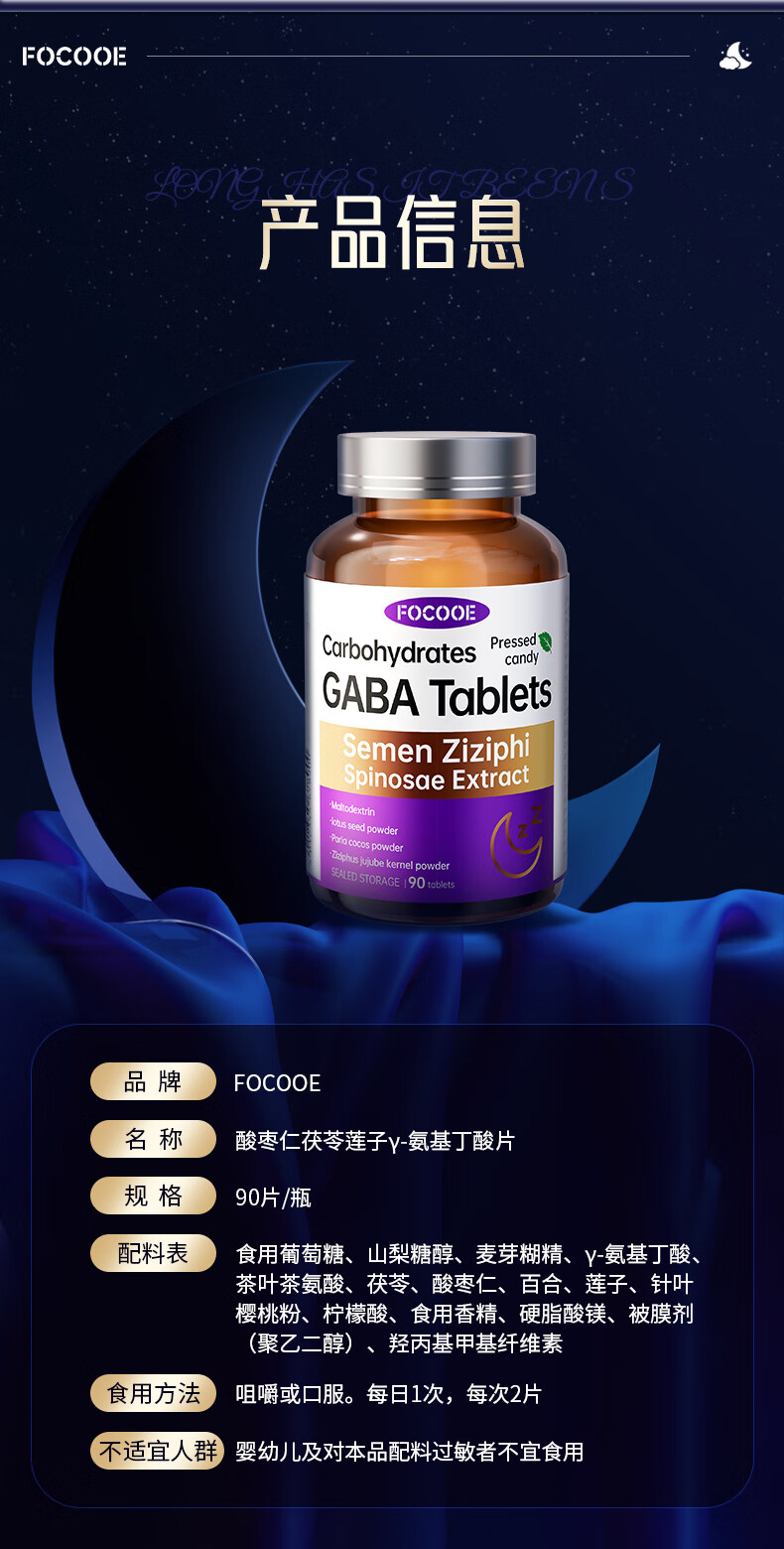 FOCOOE大陆引进特制版英国γ氨基丁酸gaba酸枣仁成人青少年褪黑素深度睡眠失眠安眠90片