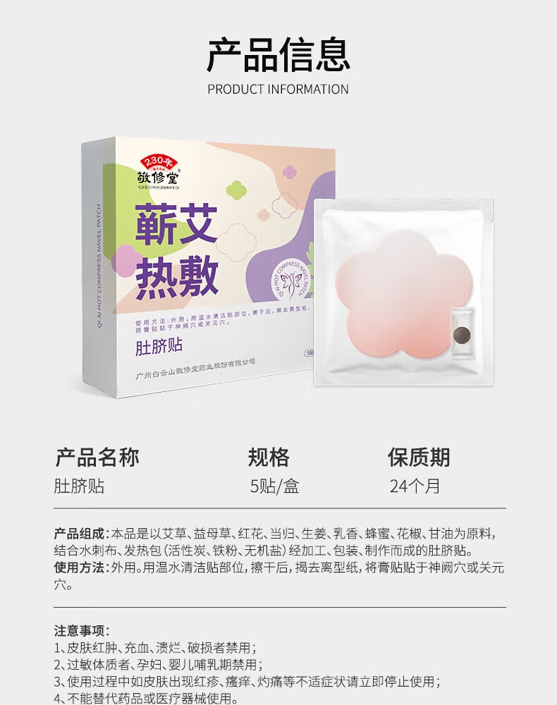 敬修堂*蕲艾热敷肚脐贴 5贴