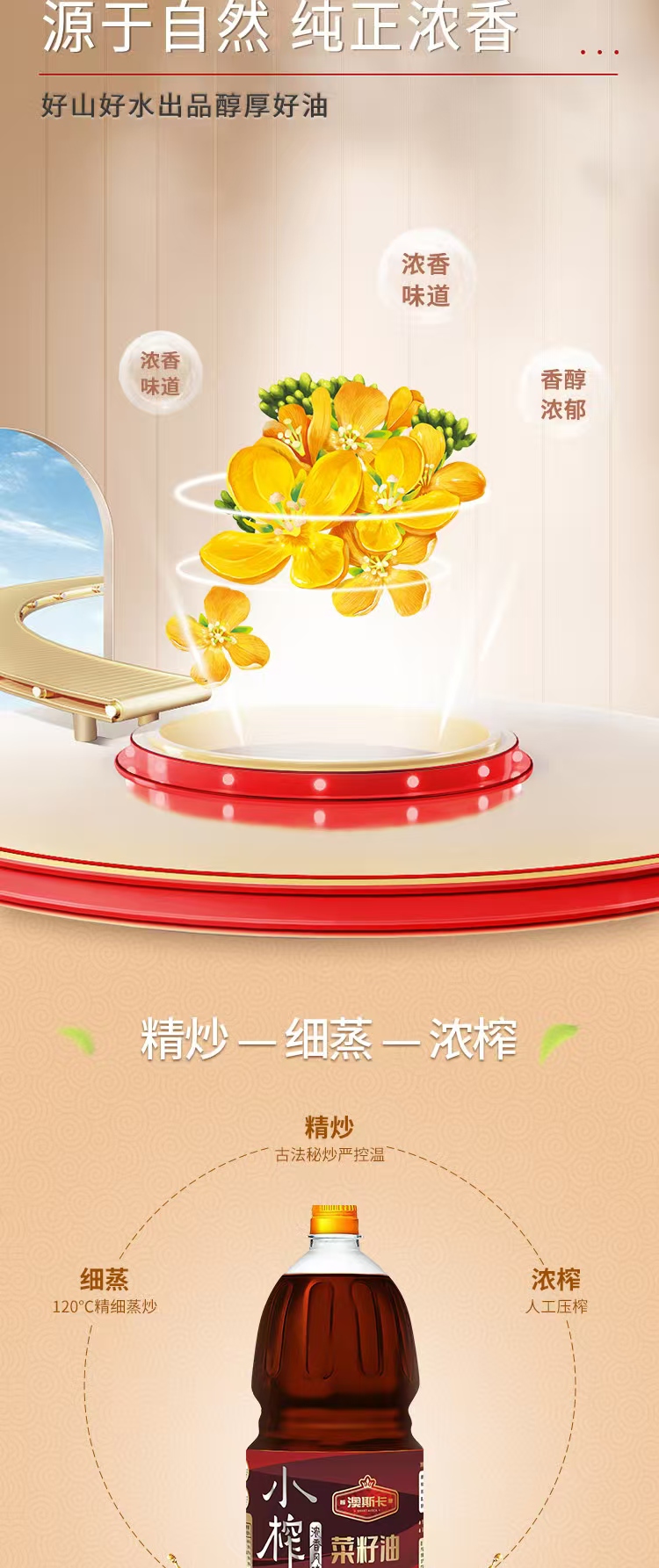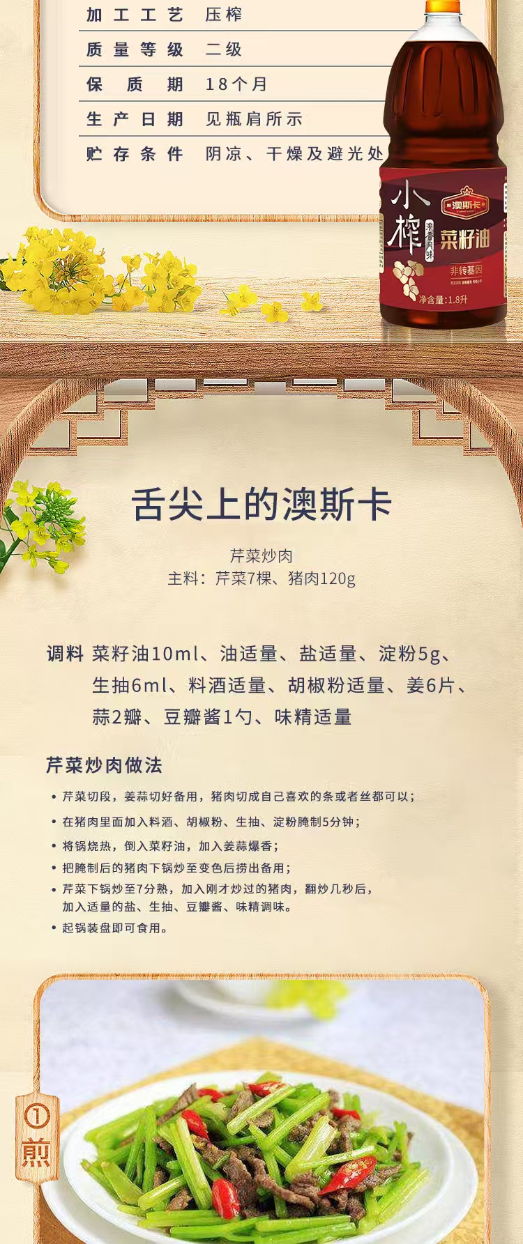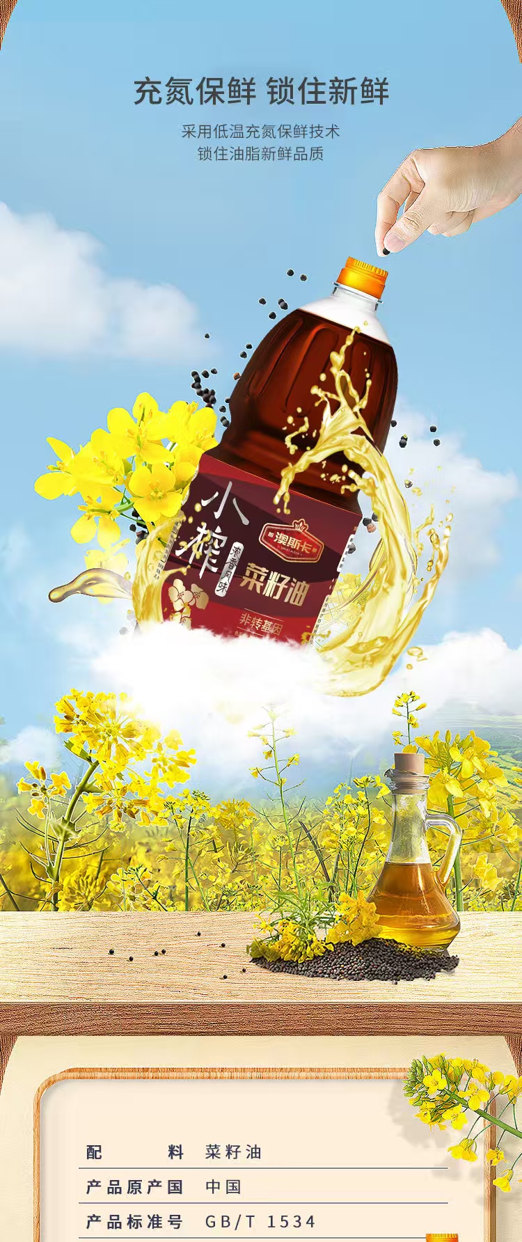 澳斯卡 小榨浓香菜籽油 1.8L 非转基因