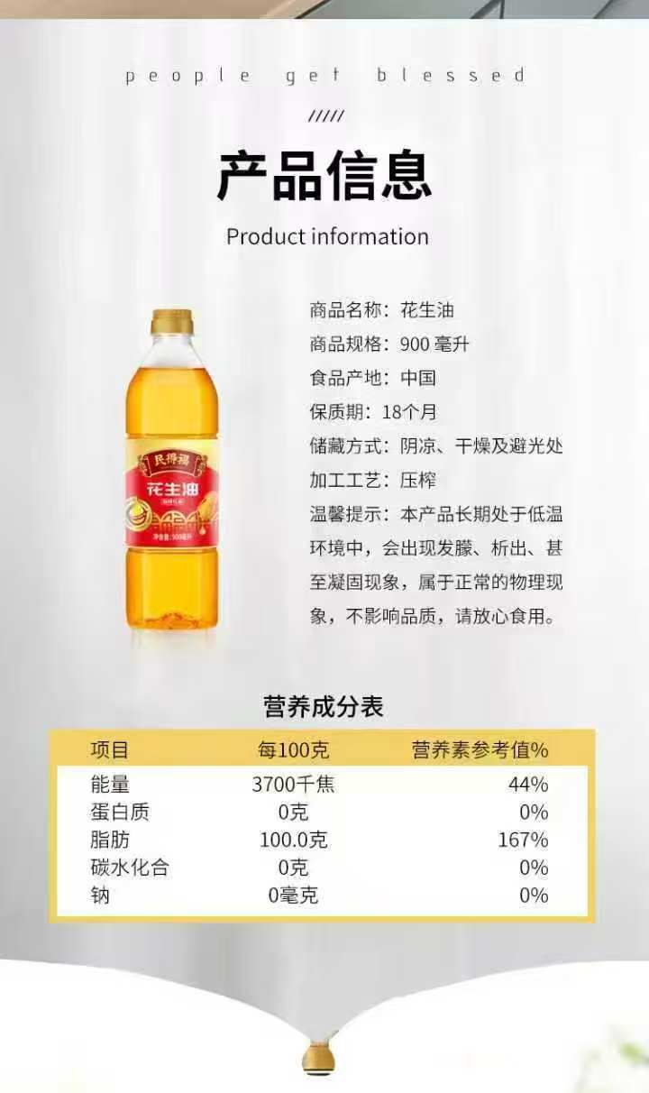 民得福 压榨一级花生油 900ml