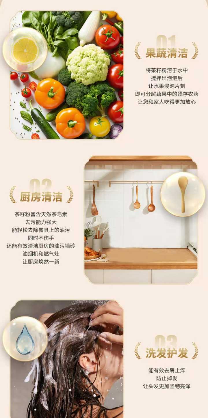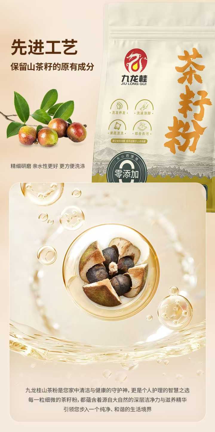 九龙桂 茶籽粉去油污茶子洗头发泡脚纯茶粉 500g