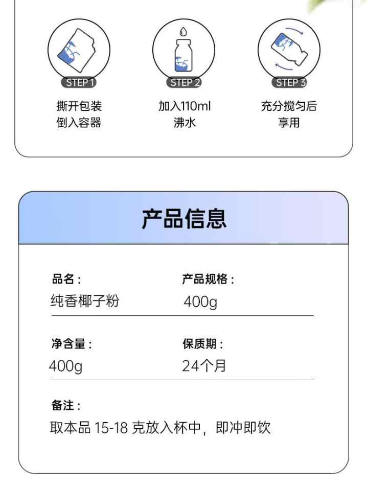 (春光)纯香椰子粉400g 椰香味 冲调 红椰为原料