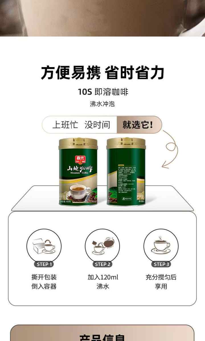 (春光 )山地咖啡400g罐装 冲调速溶咖啡粉