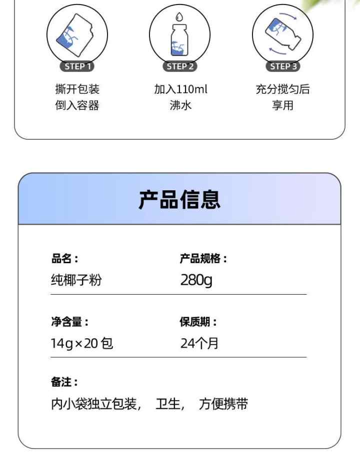 [春光食品]纯椰子粉280g 0添加白砂糖0防腐剂 即冲即饮