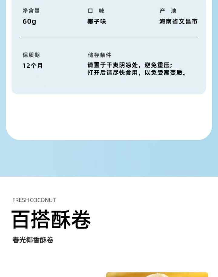 春光椰香酥卷60g*5盒 休闲饼干