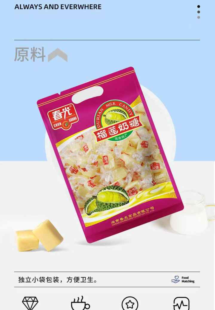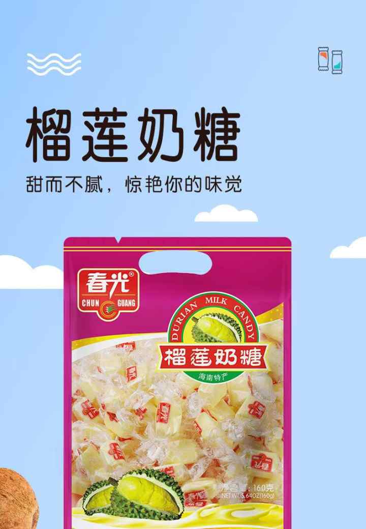 春光榴莲奶糖160g*3袋装 软糖 内有独立小颗装