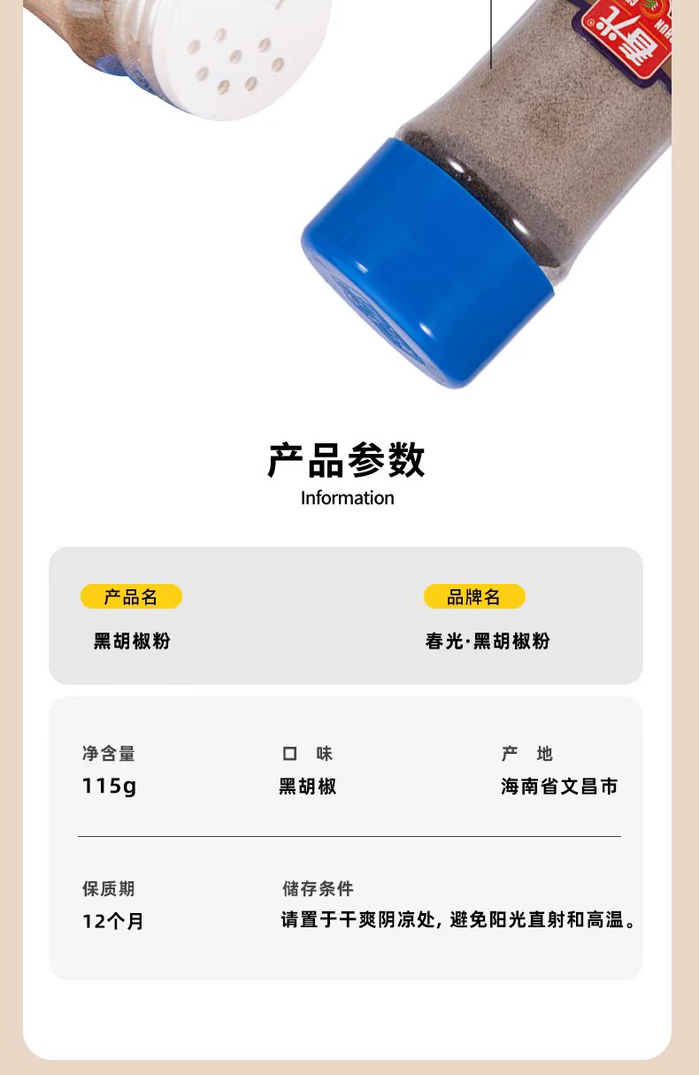 兴隆白胡椒粉/黑胡椒粉115g 瓶装汤面烧烤调味品