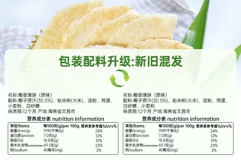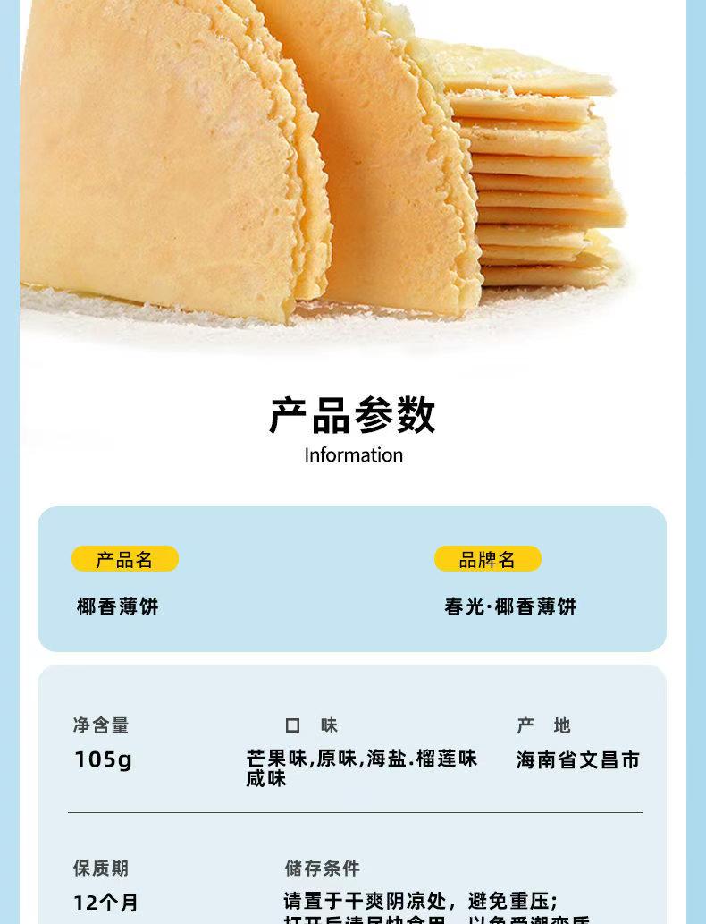 椰香薄饼105g*3盒(原味/芒果/榴莲)薄脆饼干