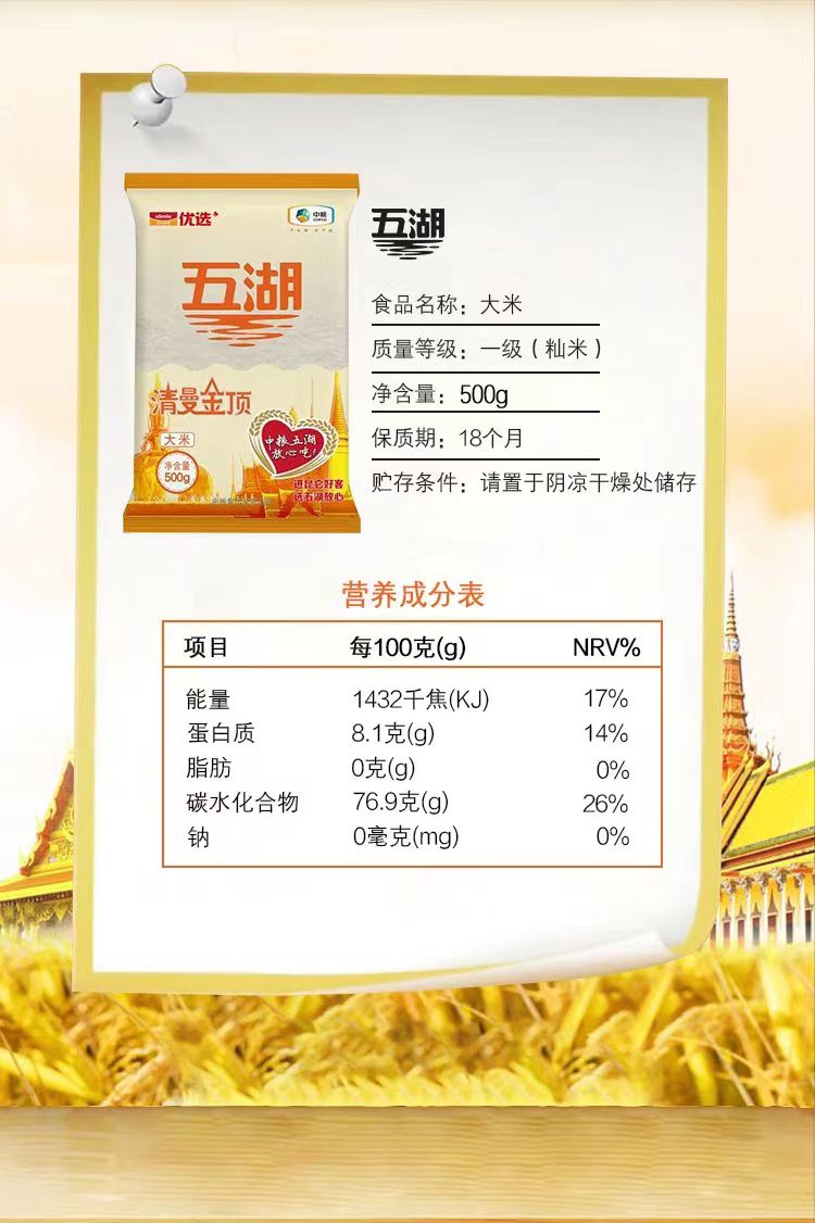 中粮五湖清漫金顶大米500g*2