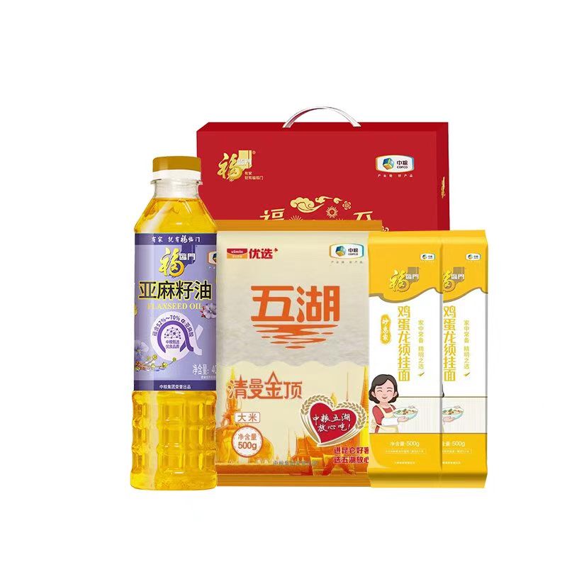 福临门妙惠家鸡蛋龙须面面条500g*2 中粮 福临门亚麻籽油400ml 中粮五湖清曼金顶大米500g
