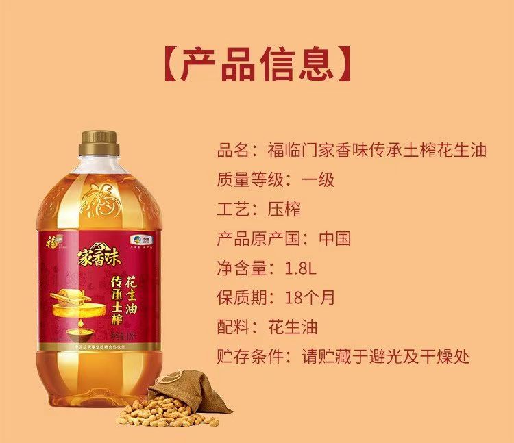 中粮福临门家香味传承土榨花生油1.8L