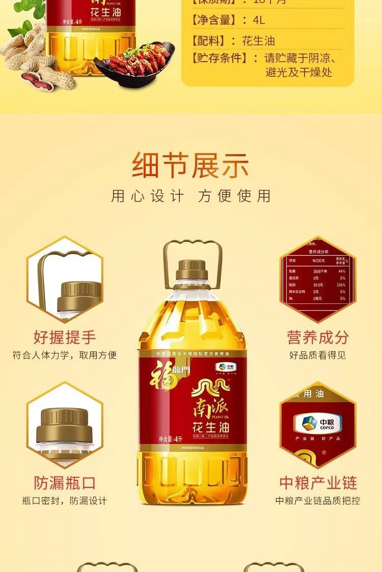 中粮福临门南派花生油4L