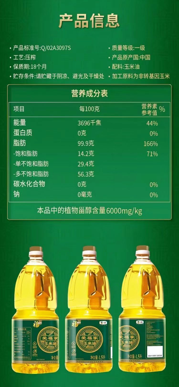 福临门爱福家玉米油1.5L