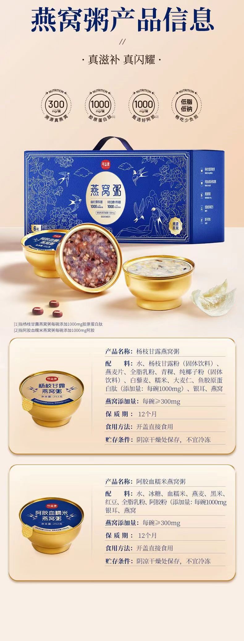 可益康燕窝粥1.512kg(252g*6) 杨枝甘露燕窝粥(252g*3碗)阿胶血糯米燕窝粥(252g*3)