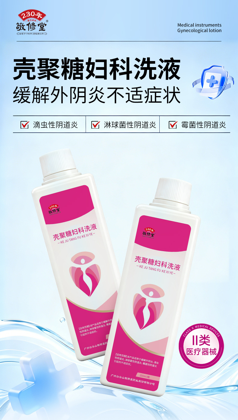 敬修堂壳聚糖妇科洗液250ml女士私处阴道炎瘙痒异味冲洗护理液