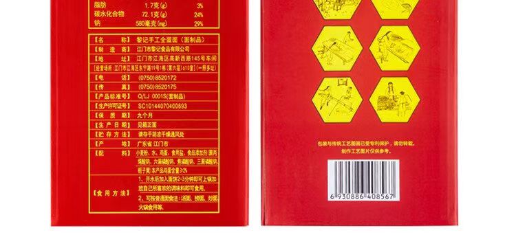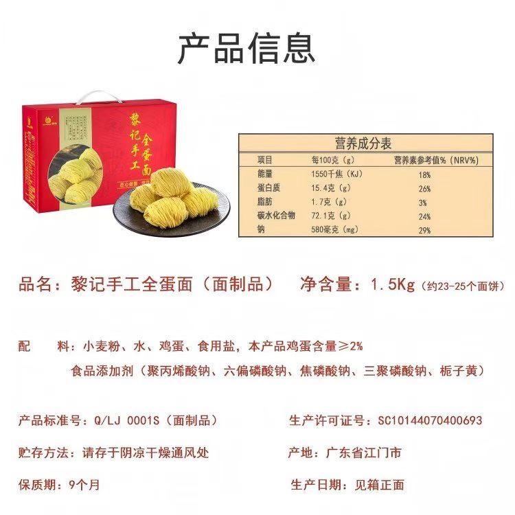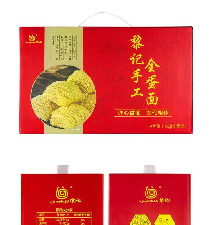 黎记 手工全蛋面1.5Kg(竹升面)盒装