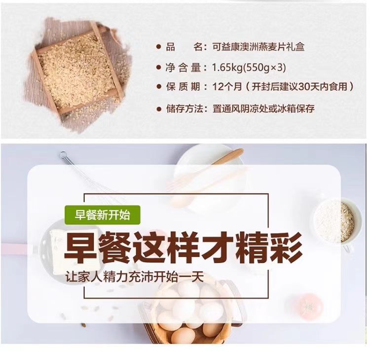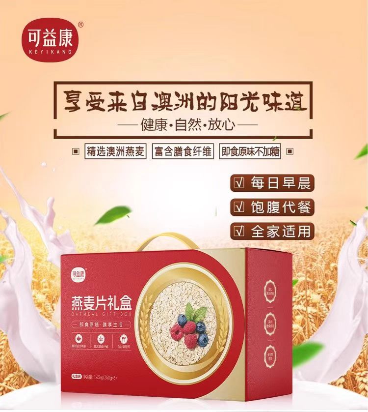 可益康 即食燕麦片桶装礼盒1650g(550g*3桶/盒)