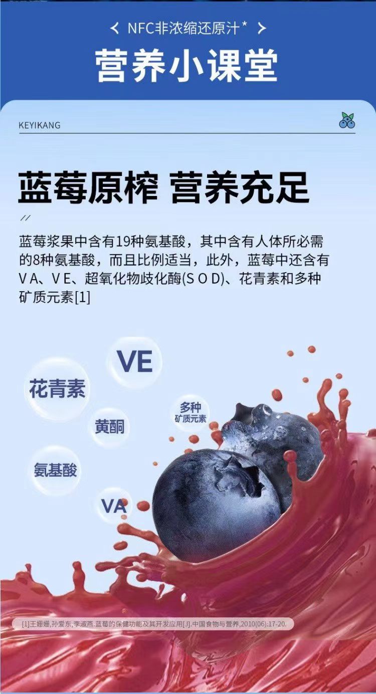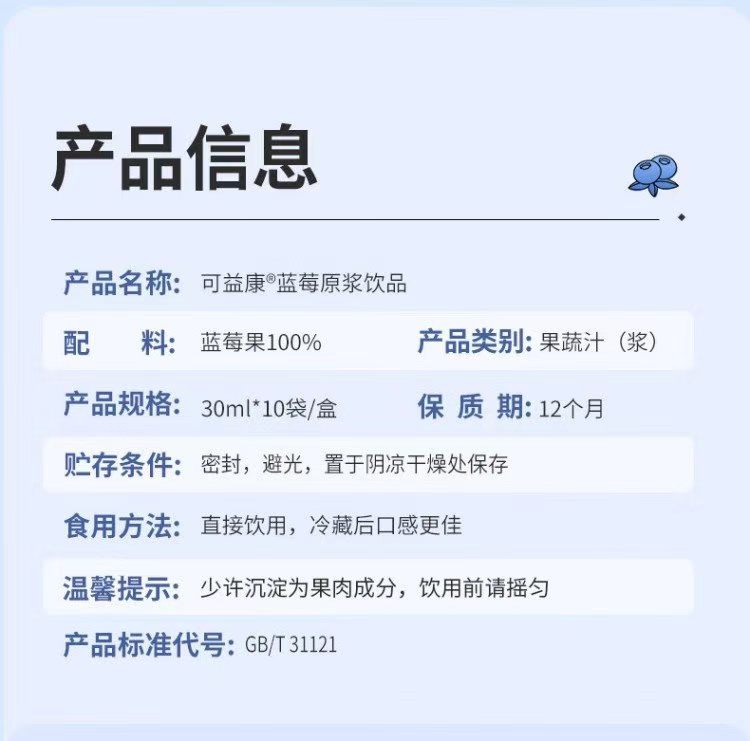 可益康 蓝莓原浆饮品300ml*10袋/盒
