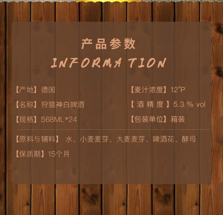 狩猎神(Hubertus)白啤酒568ml*24听 整箱装 德国原装进口