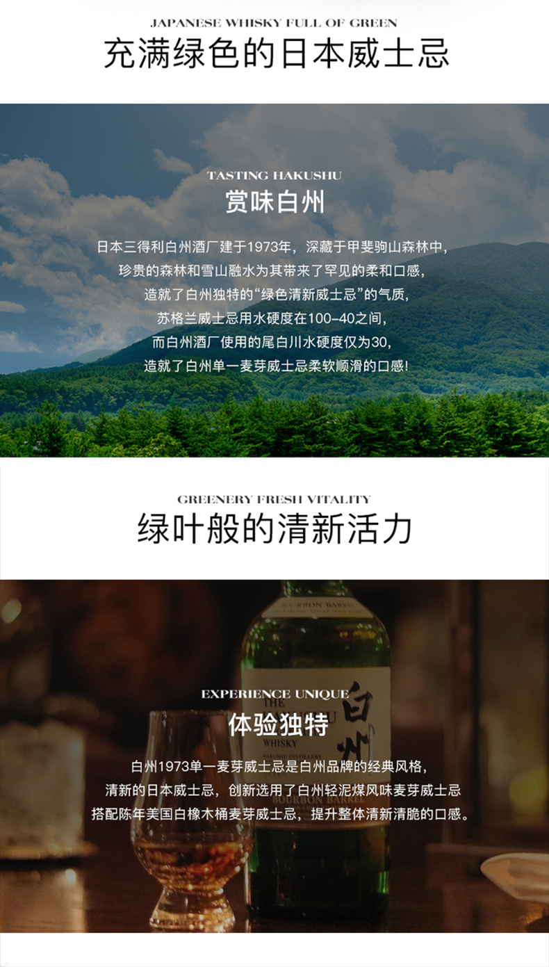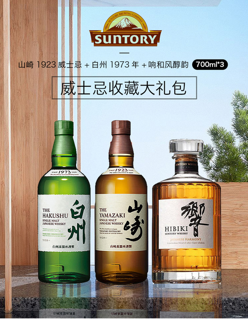 山崎(Yamazaki)三得利威士忌山崎1923+响和风醇韵+白州1973日威三
