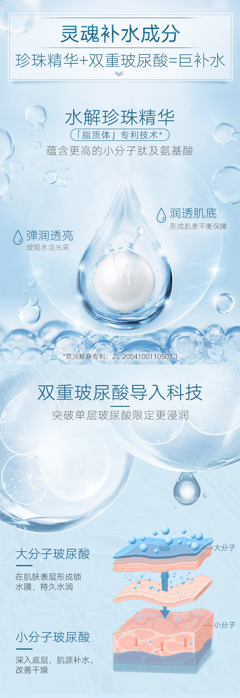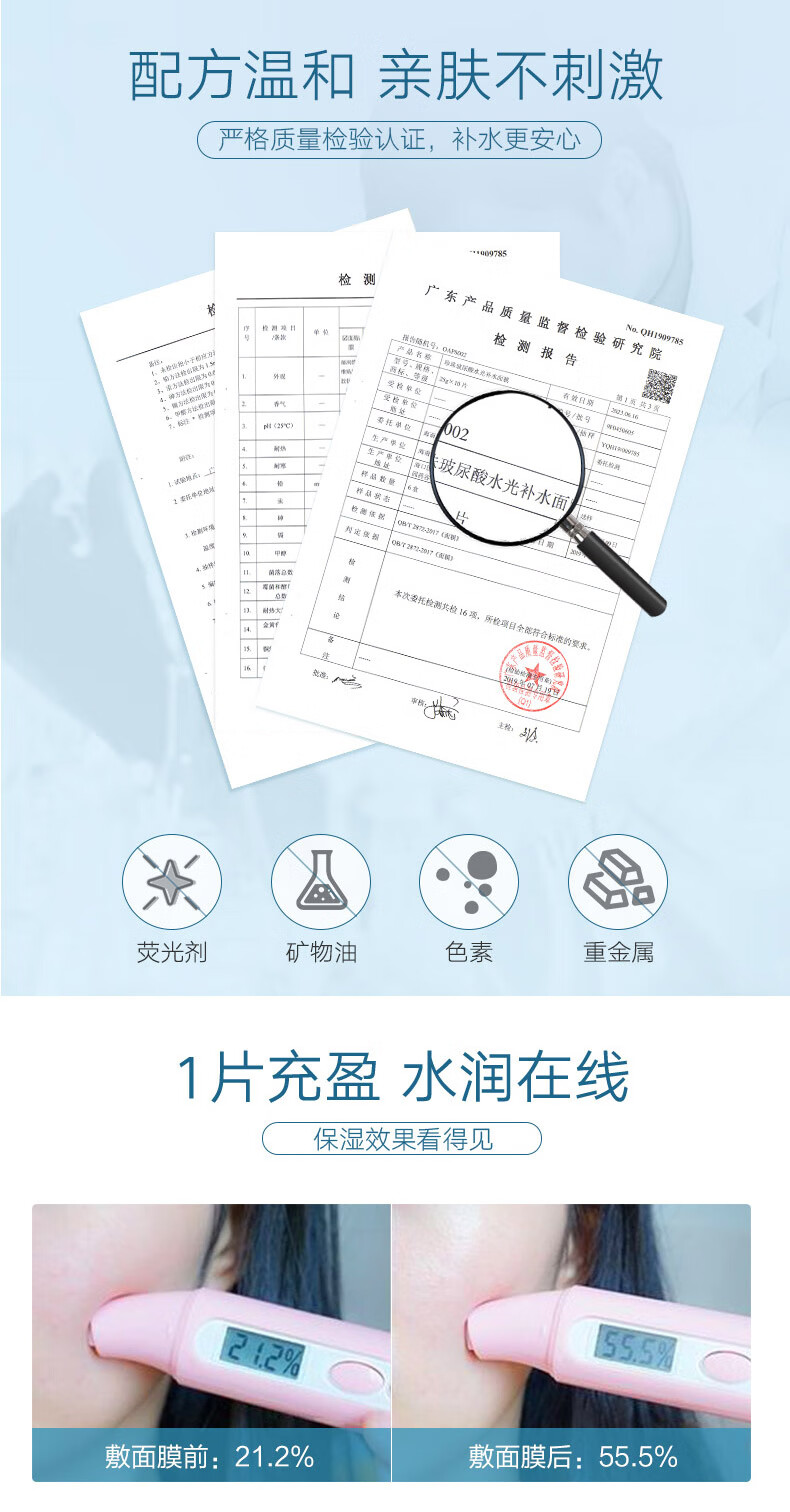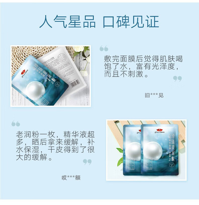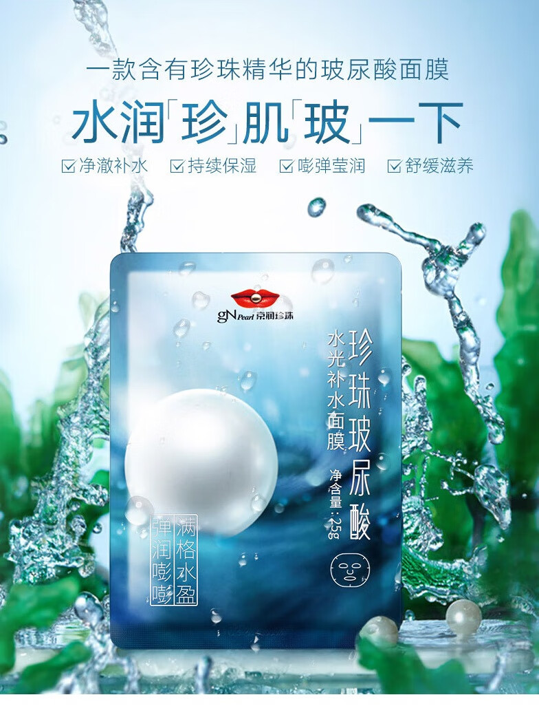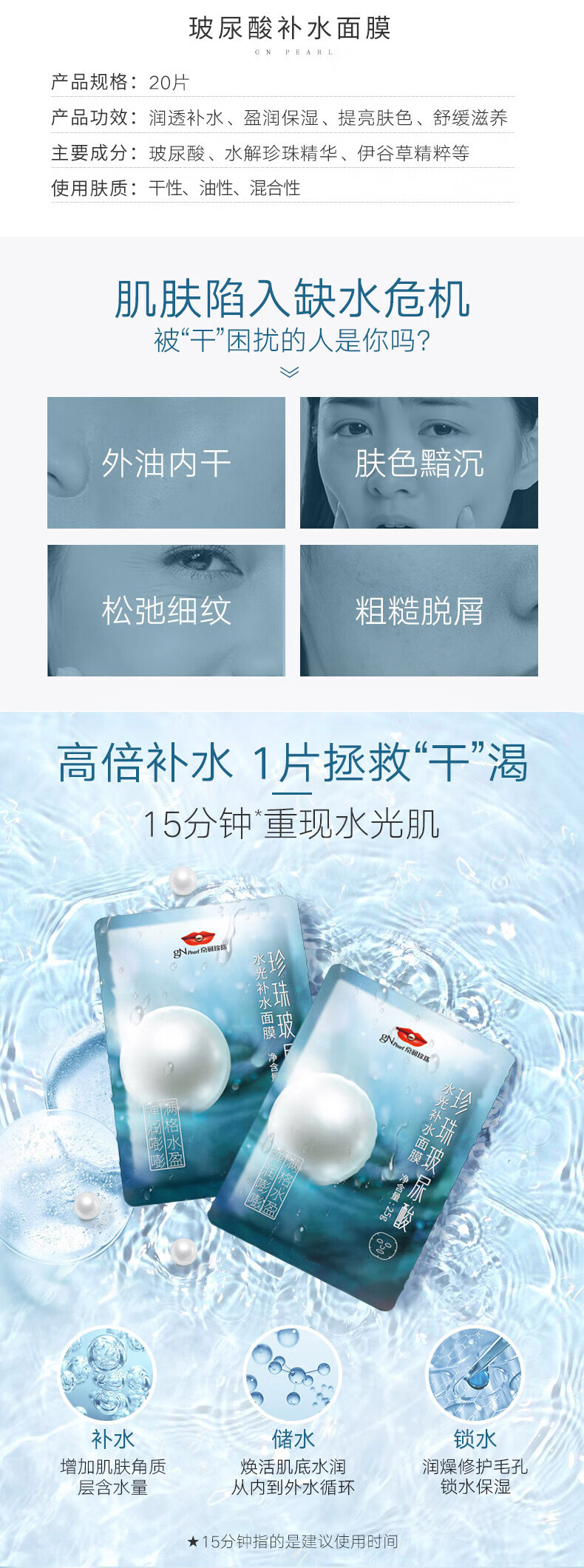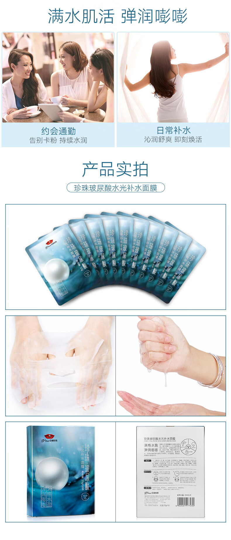 京润珍珠 玻尿酸面膜套装20片 补水保湿滋养提亮肤色 深层锁水面膜贴女男