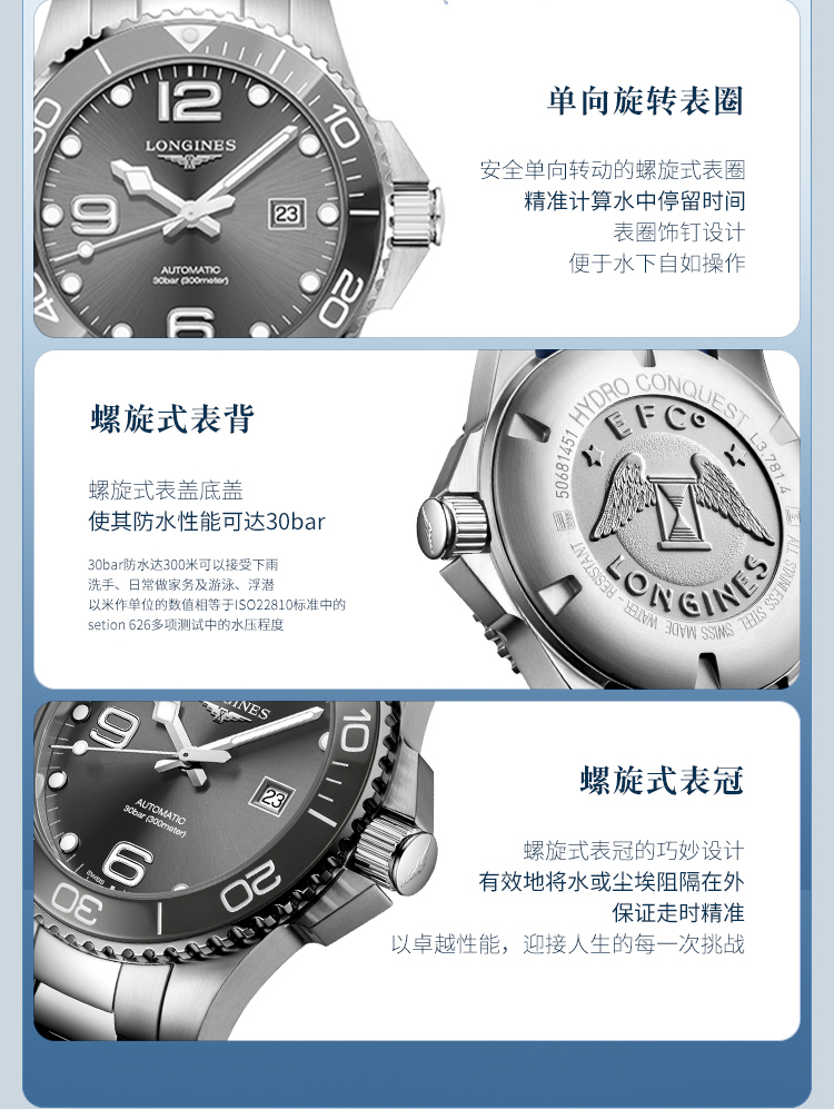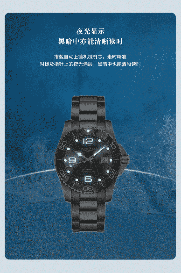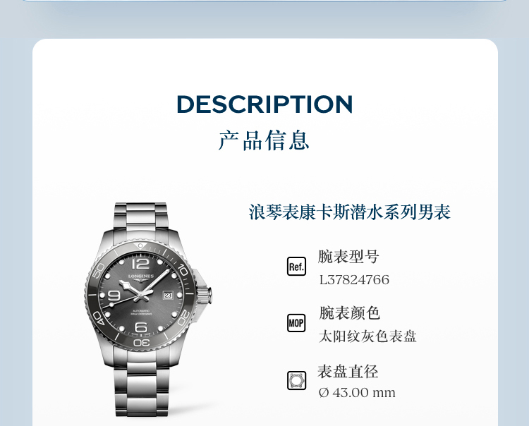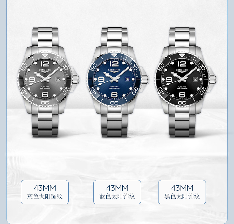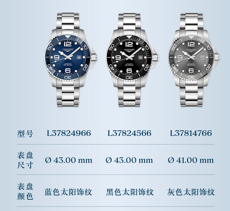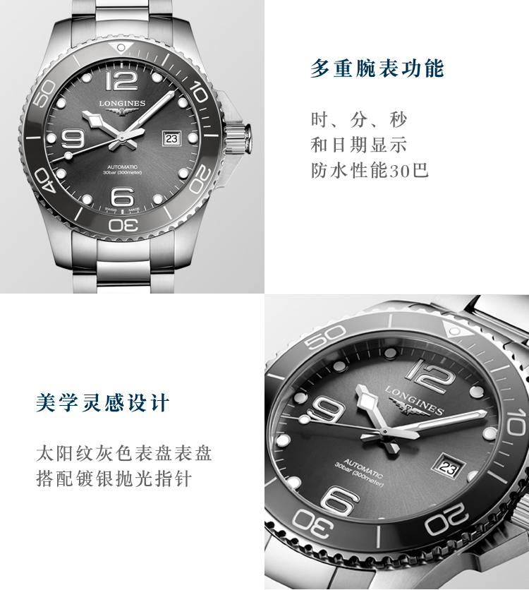 浪琴(Longines)瑞士手表 康卡斯潜水系列 机械钢带男表 L3782476