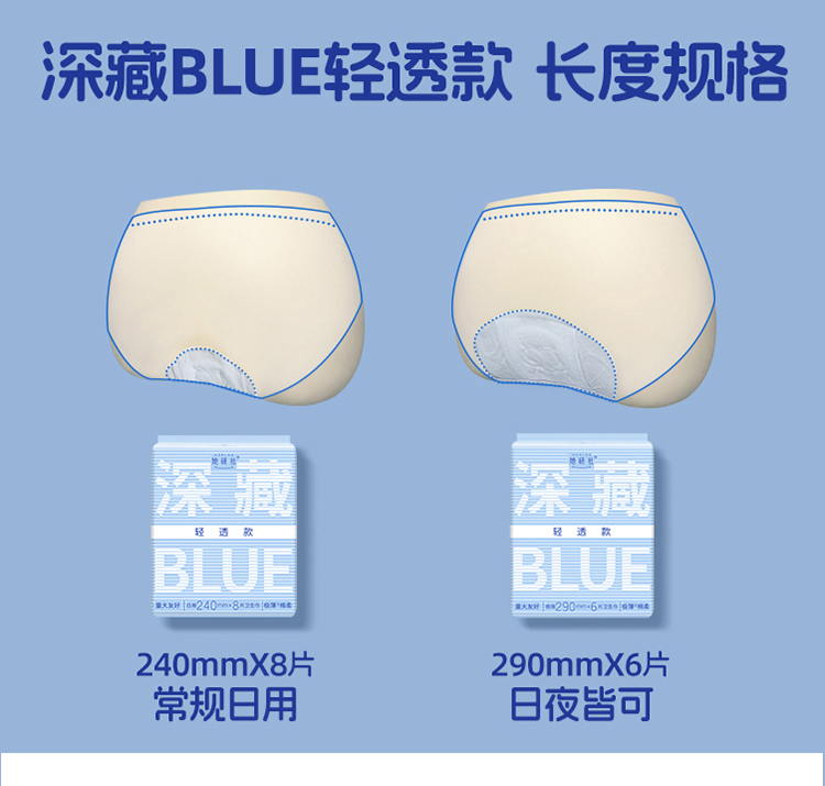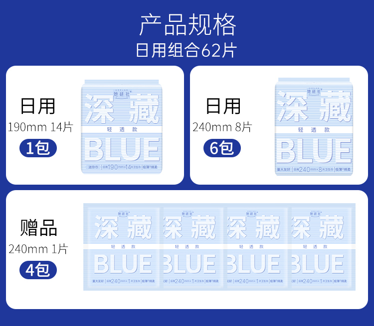 她研社卫生巾深藏BLUE轻透款日用组合-7包62片(4片同款日用便携装)