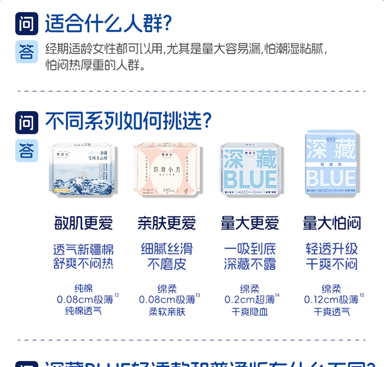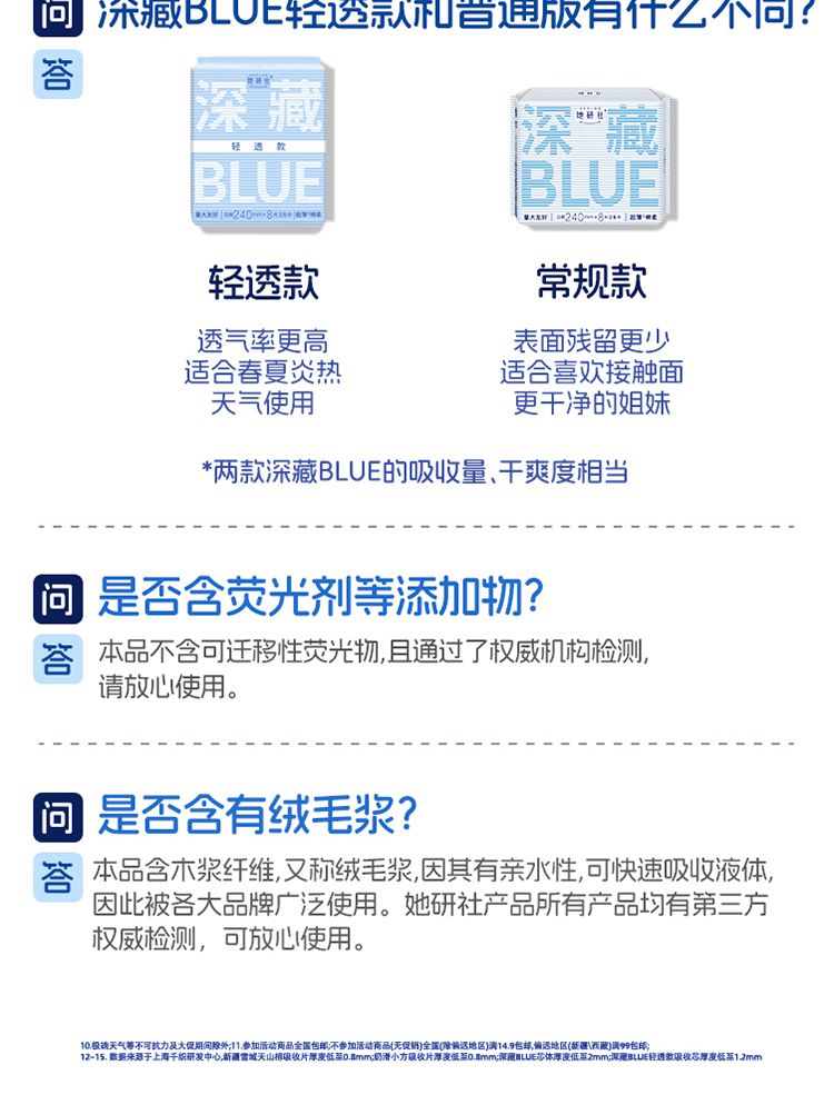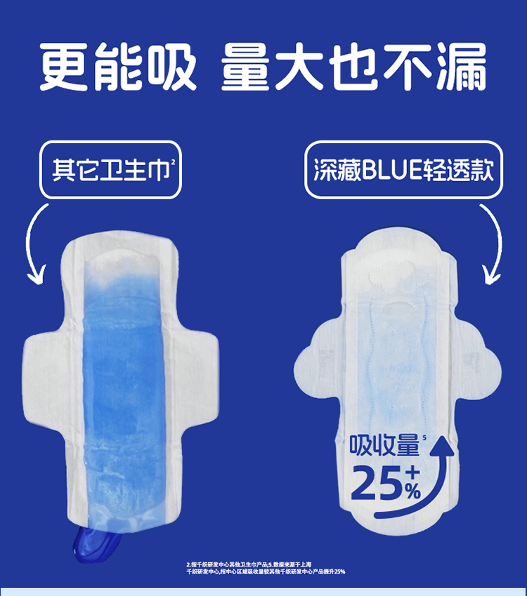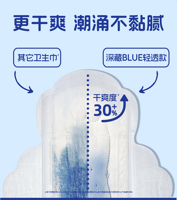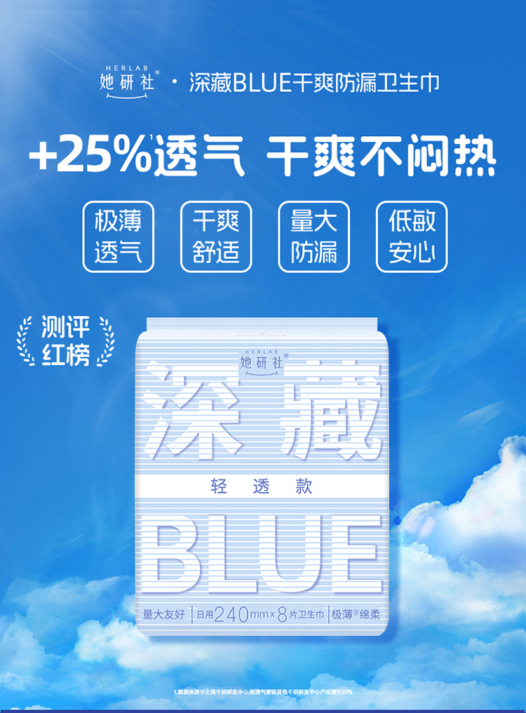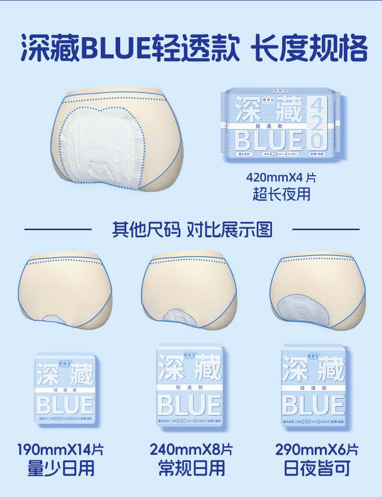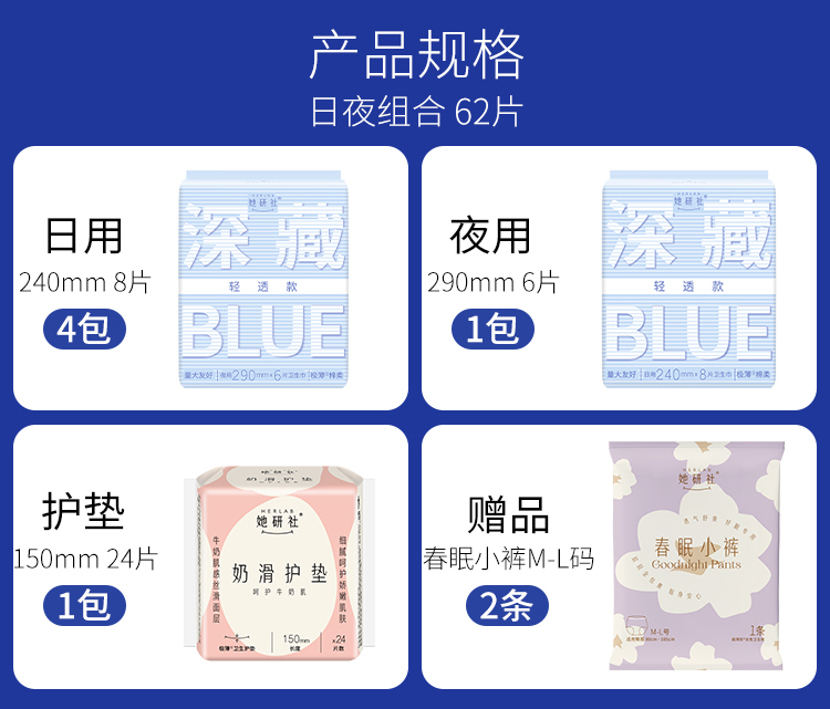 她研社卫生巾深藏BLUE轻透款日夜组合-6包62片(送2条小裤)
