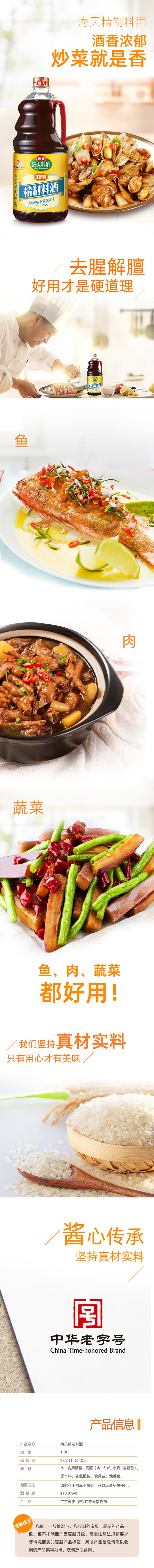 海天 料酒 陈酿料酒精制料酒烹饪黄酒去腥解膻增味添香1.9L中华老字号